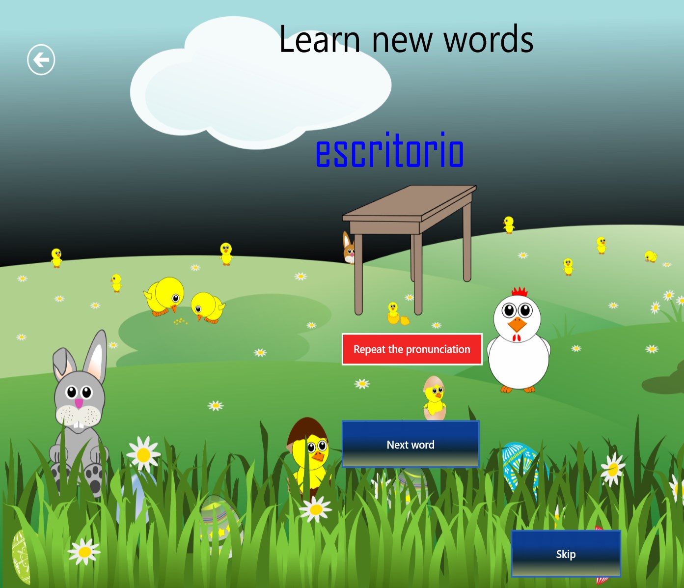 Learn spanish while having fun with this cool memory game. Also, listen to the voice of your new friend Chaky the dog to learn how to pronounce the words correctly. You will improve your vocabulary with fruits, animals and other mixed themes.