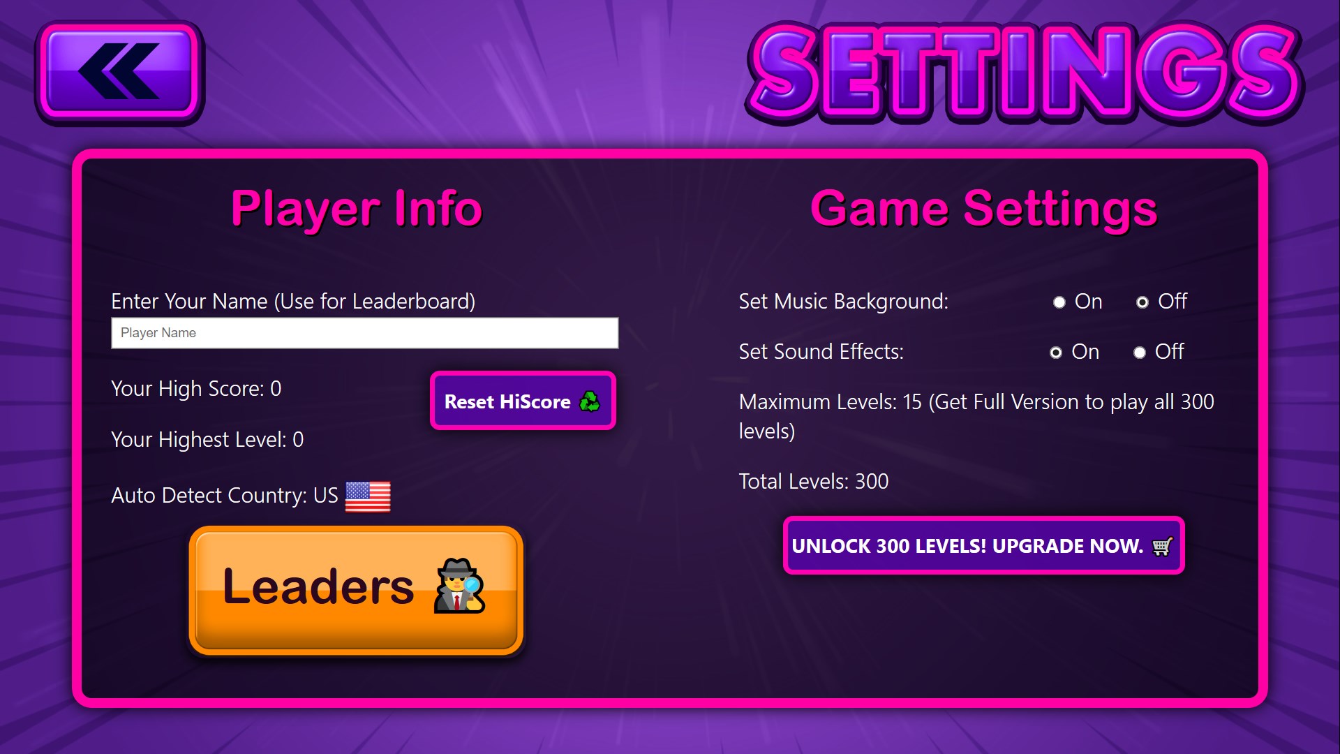 - New music background and sound effects.