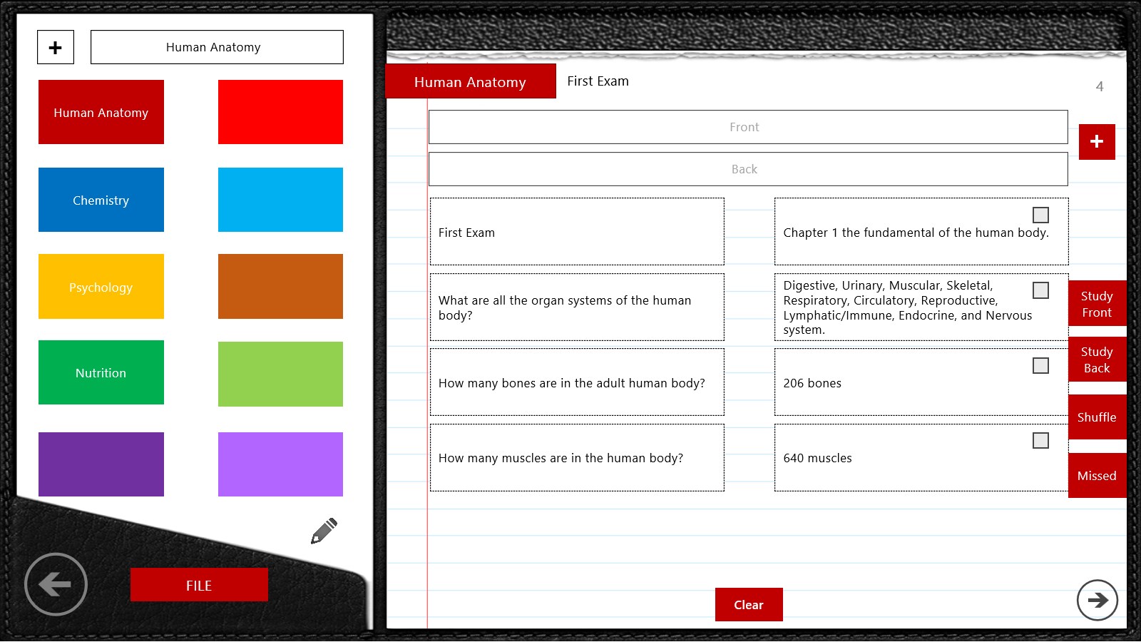 • Your time is valuable, so we add a Notebook were you can create your flashcards fast, easy, and efficiently in one place.