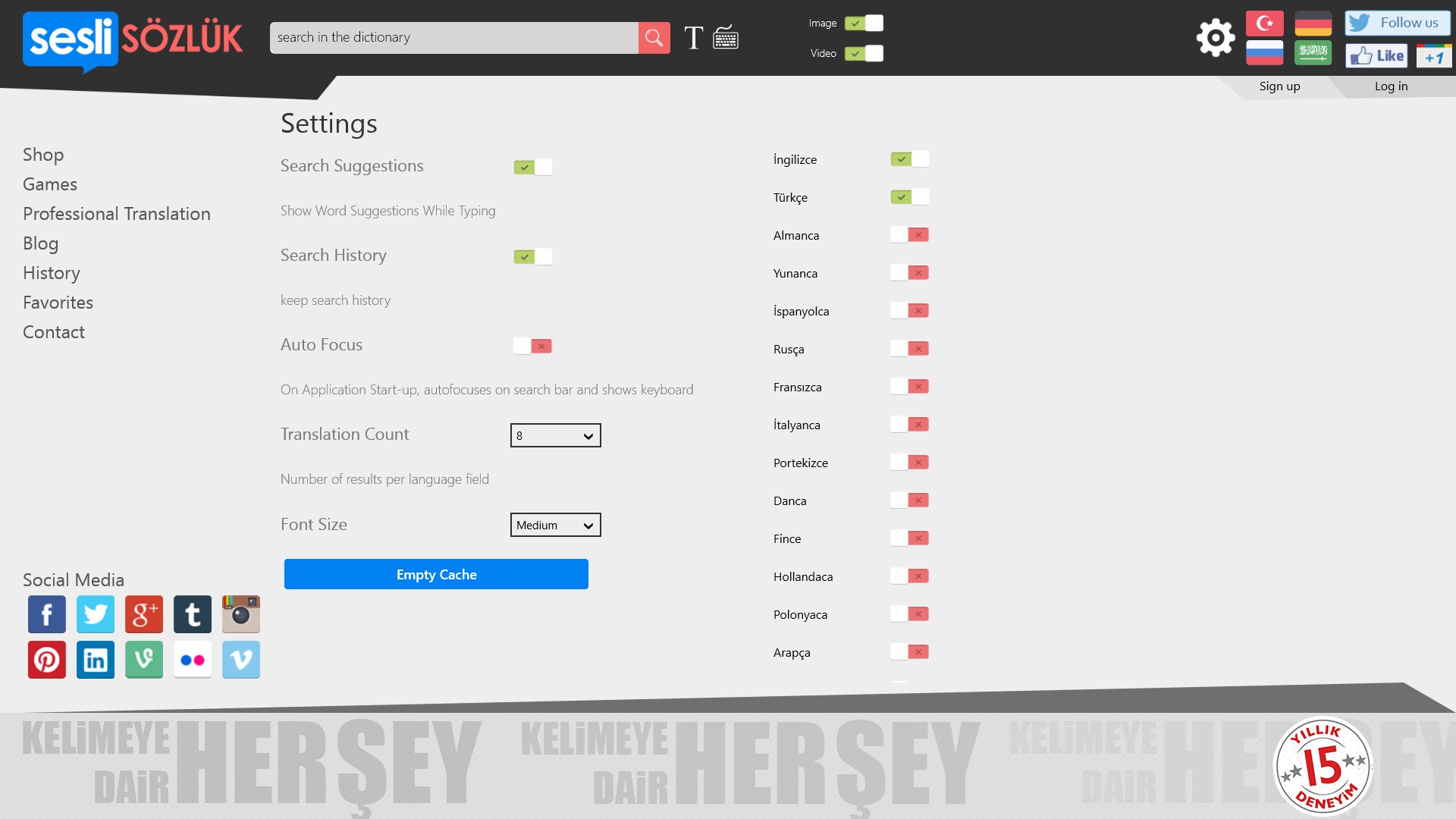 Although Sesli Sözlük made a name for itself as an English-Turkish dictionary, it expanded its language options over the years. German-Turkish, Turkish-German, Turkish-French and French-Turkish translations are only a few language combinations that you can find on Sesli Sözlük. As mentioned, our database consists of 20 million words in 20 languages. Yet, we are not only an English, German or French dictionary but a dictionary offering all languages options.