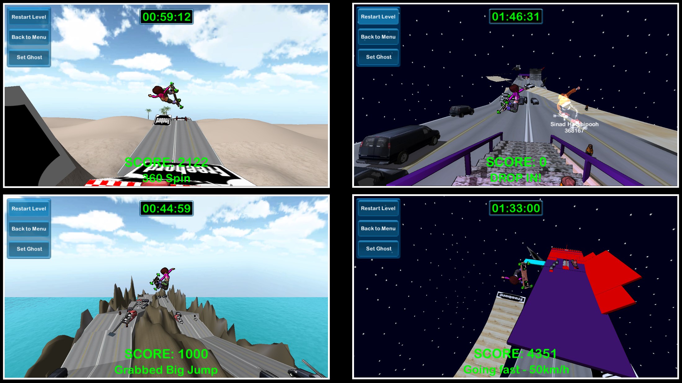 33 missions on 18 levels4 adaptable control modescustomizable charactersimprovable skillshighscores (friends, 24h, 30days, all time)replays and ghost runs of other players