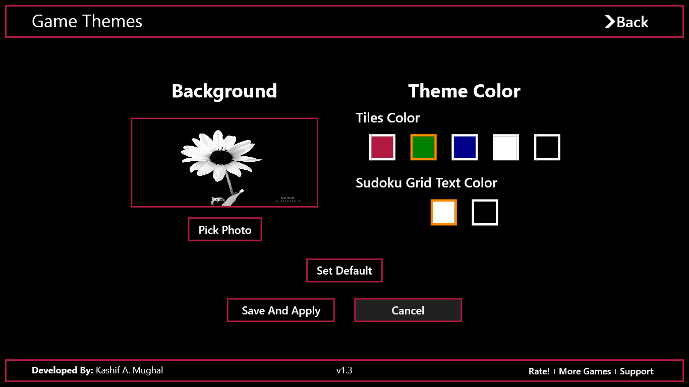 - Tile Colors and Sudoku Grid Box Text Color can be changed