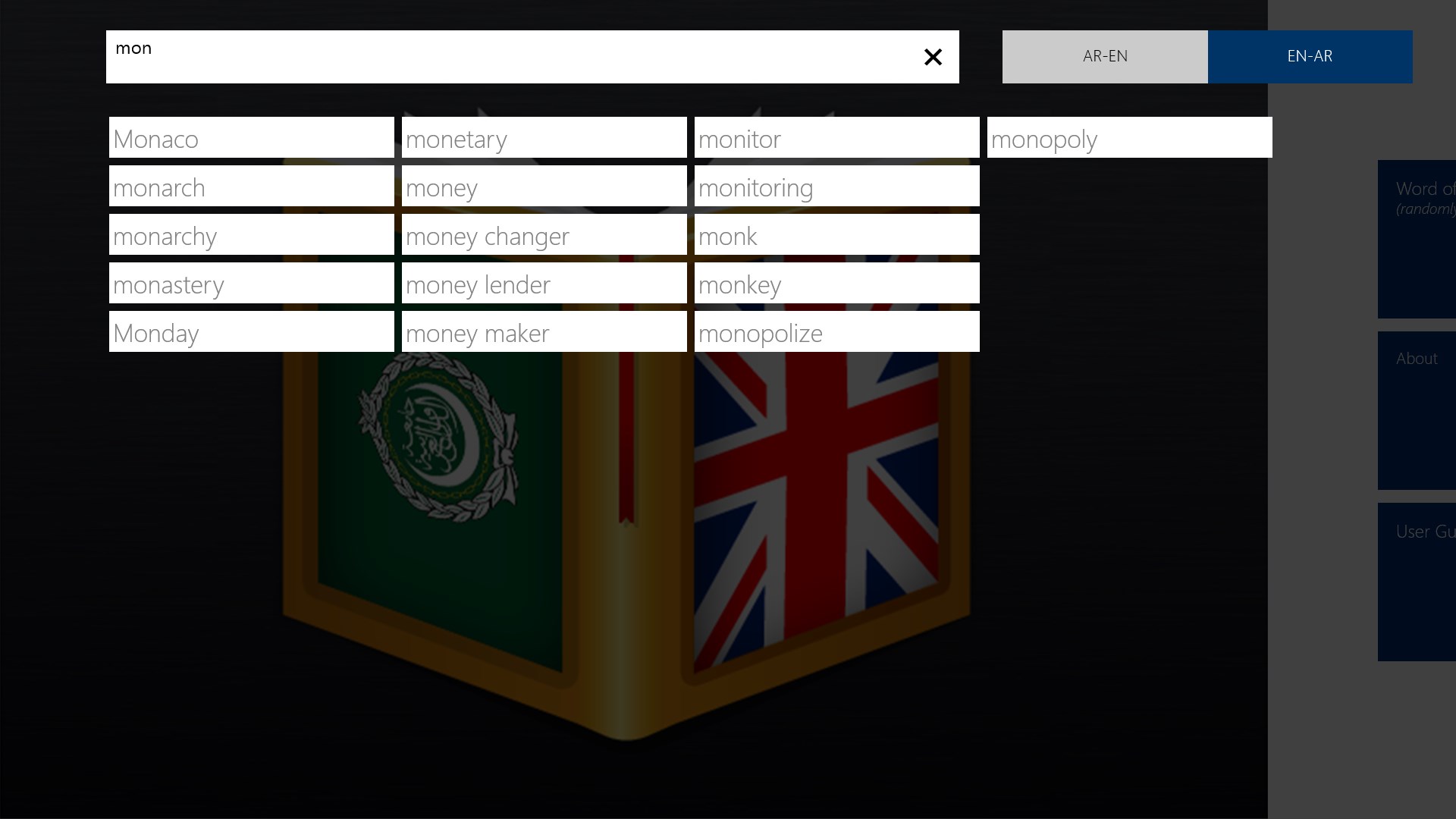 Step 4: Use Arabian<>English Dictionary