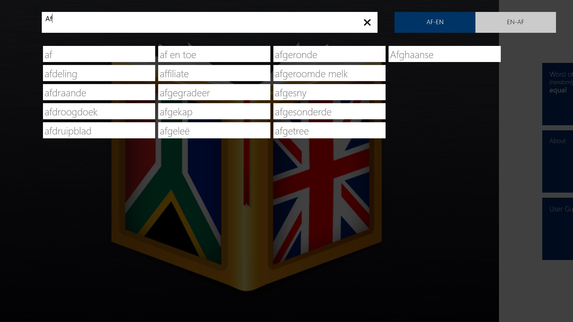 Step 4: Use Afrikaans<>English Dictionary