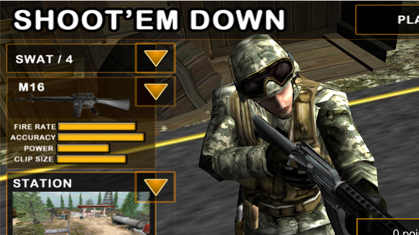 - choose map to play and weapon. Warning! you need points for better guns and new maps