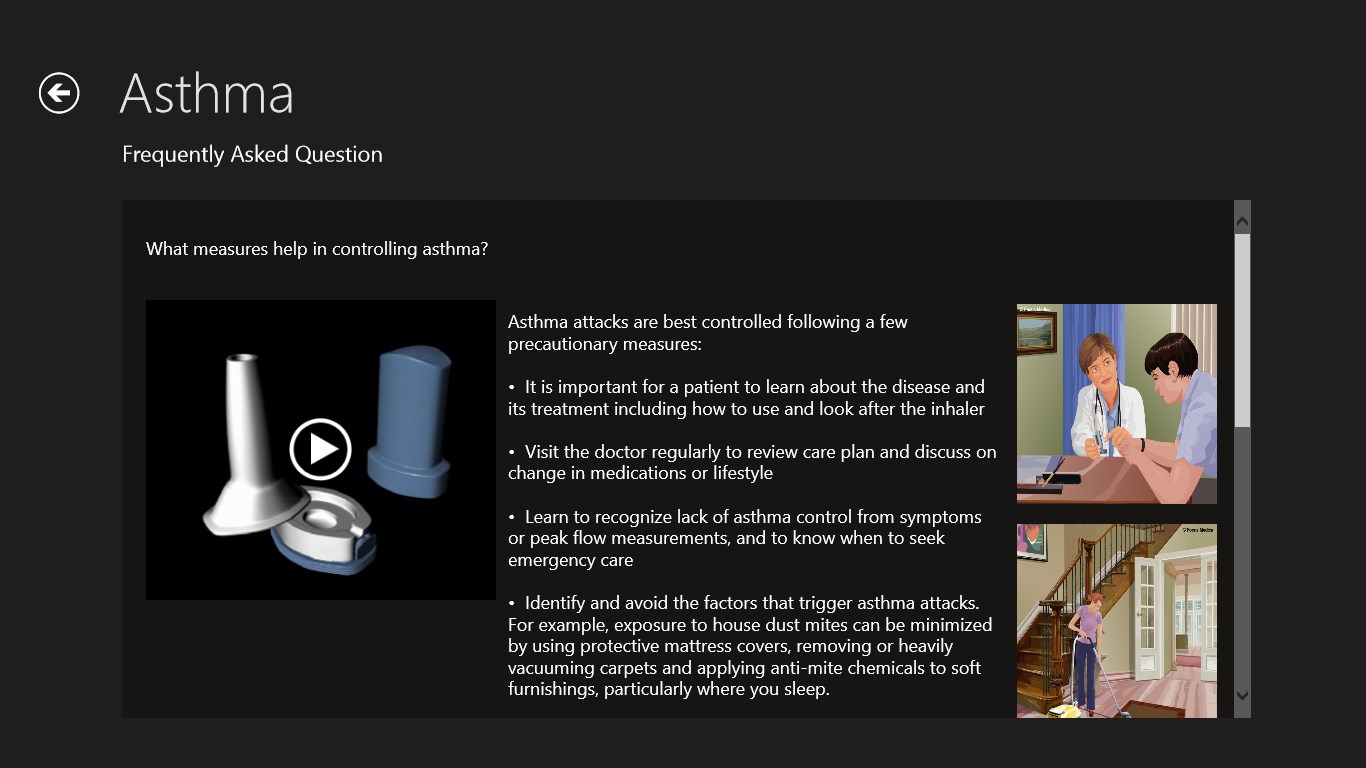 The animations in this application simplify medical and health information as visual media is particularly well suited to the science of medicine. They take the viewer on a virtual tour of the human system through extremely accurate and high quality animation to effortlessly understand chronic illness and diseases, therapies, procedures or techniques. Created with the expertise and support of internationally reputed opinion leaders, these incredible animation videos accompanied by audio make it easier to perceive and understand the cellular world, metabolism, and body functions.