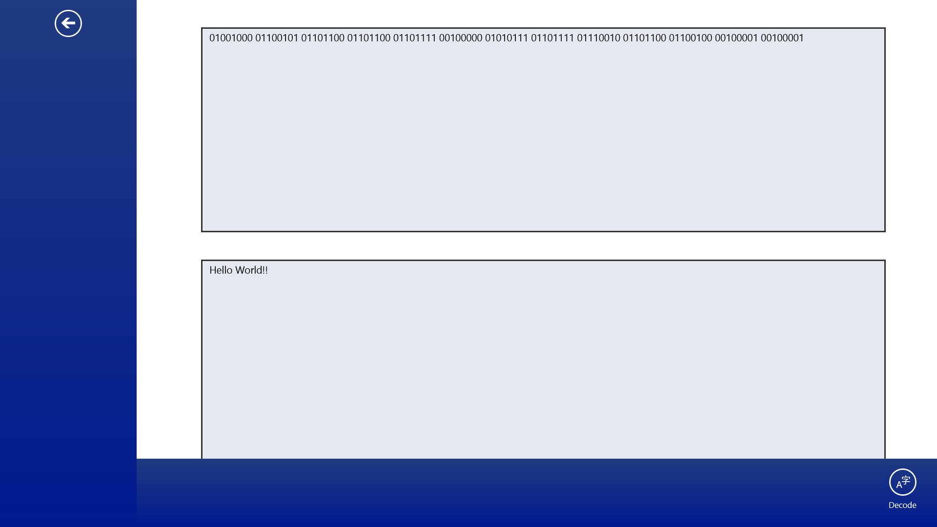 Binary Translator. Converts text to binary and binary to text.