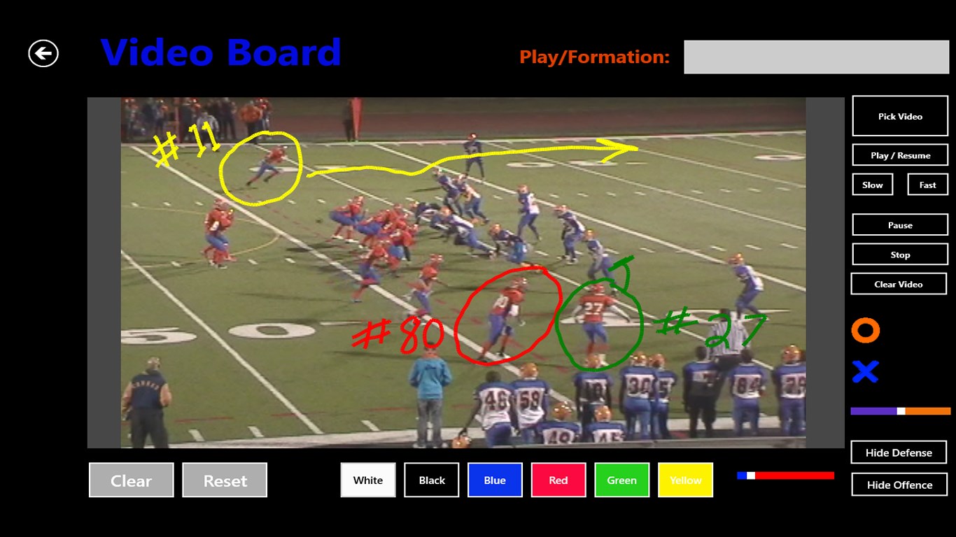 Quick and easy to use.Football, basketball, baseball, volleyball, cricket, hockey, soccer, rugby, lacrosse, gaelic football, aussie rules football, badminton, tennis, volleyball, field hockey and curling preset fields.Custom sport view creation support.Ability to add custom background.Drag and drop players.4 ink colors.Adjustable player size.Adjustable opacity.Screen shot capable.Lockable players.Play Labelling.Included white backgrounds for easy playbook saving and printing.Ability to save player positions on the custom page.Telestrator feature allows diagramming over video.6 customizable preset postitions for each sport.Ability to toggle between player # and X and O mode.Ability to Animate Plays