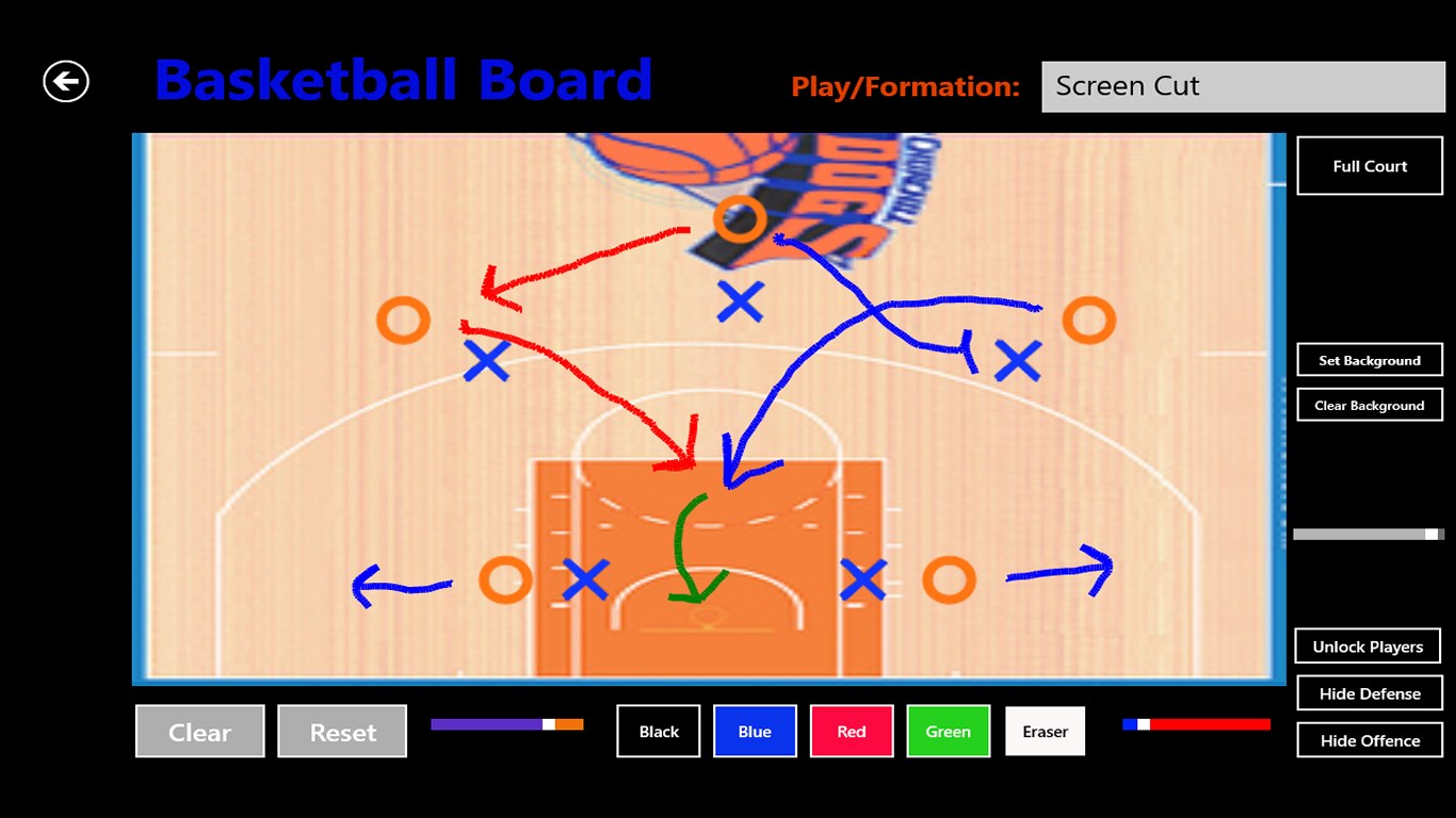 Sport Board is a simple sport white board app. Presets field displays for basketball, football(American and Canadian), volleyball (regular and beach), cricket, hockey, soccer, baseball, field hockey, aussie rules football, gaelic football, badminton, lacrosse, tennis, rugby and curling are included in the app. Sport Board allows you to save 6 preset formations for each sport. Sport Board can also be used for other sports as there is a custom sport view. Just add your own background and save your player positions. Users can use the preset field displays or choose their own field backgrounds from their picture library. The new telestrator feature allows for diagramming over video. All features have been designed with speed of access and usability in mind, so that this app can be used quickly in timeouts. This app can also be used on projection screens for team strategy sessions or used for playbook creation with windows 8's screen shot functionality. If your bored, the Curling Board could even be used as a 2 person game!