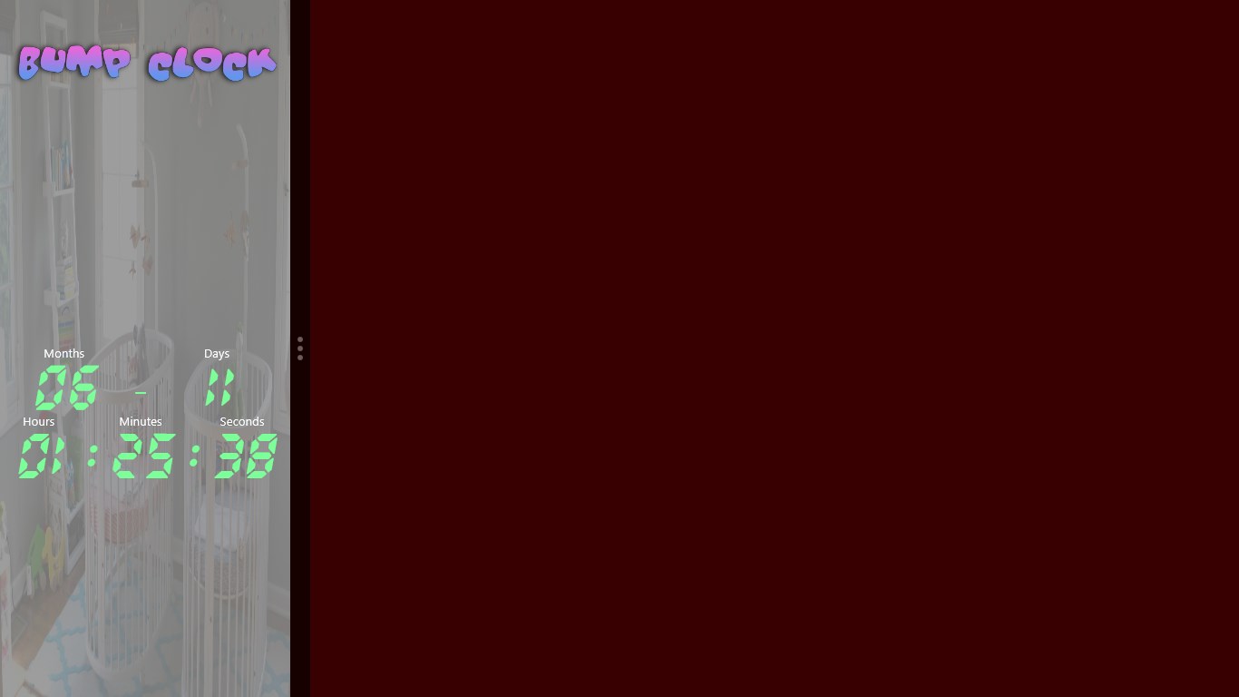 The perfect tool to count down to the most important time, your new baby's birth!!! Open it regularly and you can watch the countdown!