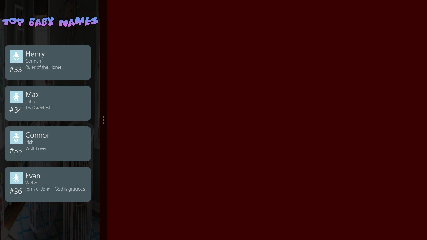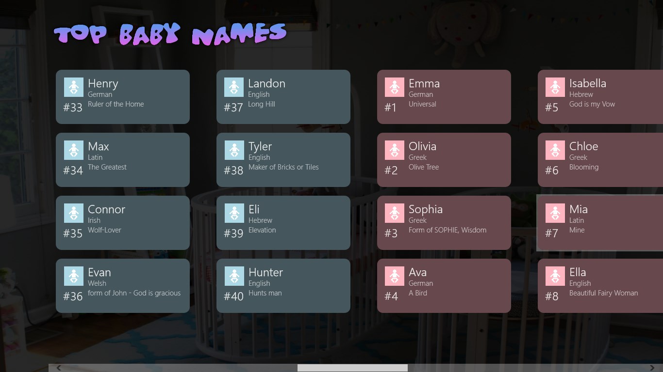 Get the latest list of the Top 40 Boy's and Top 40 Girl's baby names right here! Included with each name is the name's origin and meaning to help you make that important decision.