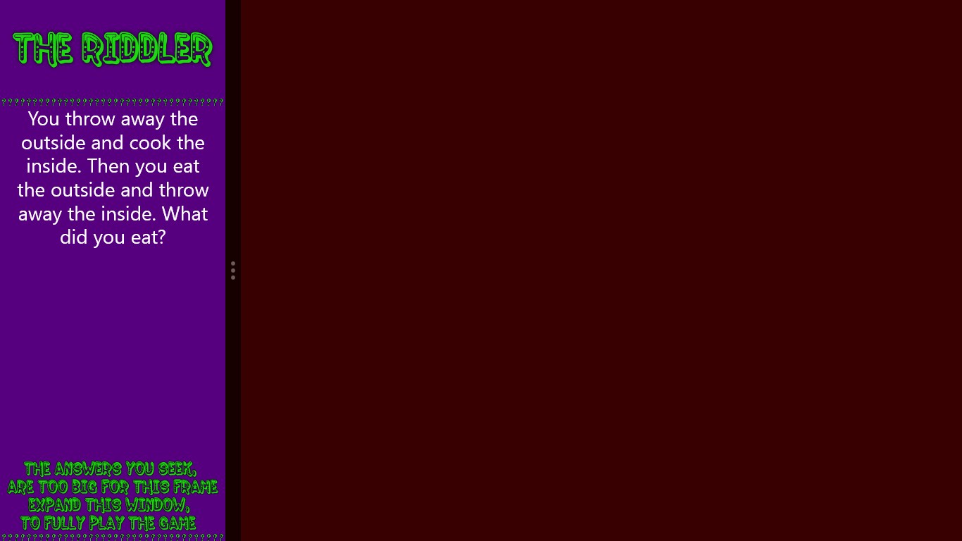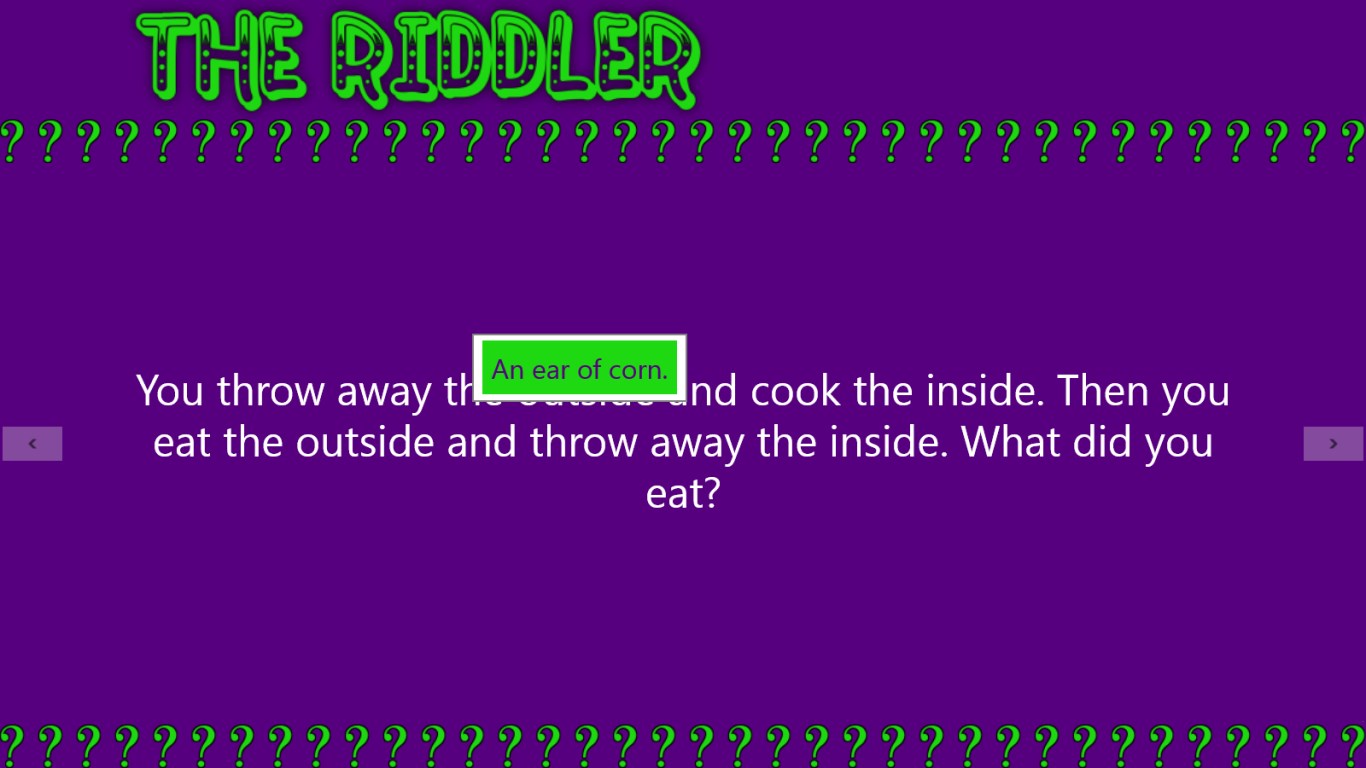 Try to answer the riddle on the screen and if you think you know the answer, tap and hold the riddle or move your mouse over it to reveal the answer!