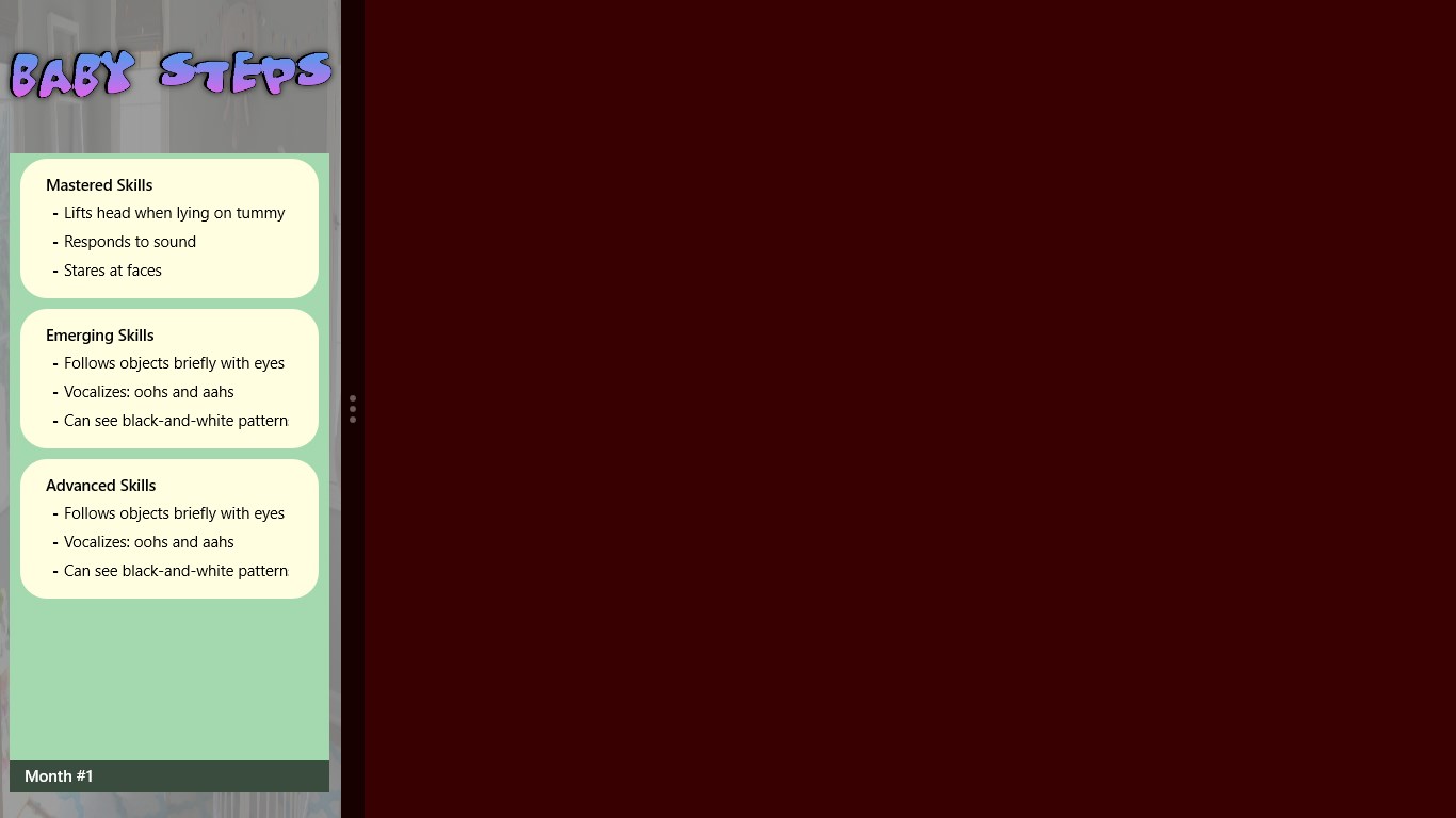 Quickly and easily look up the expected development stages for your baby with this quick and easy app.