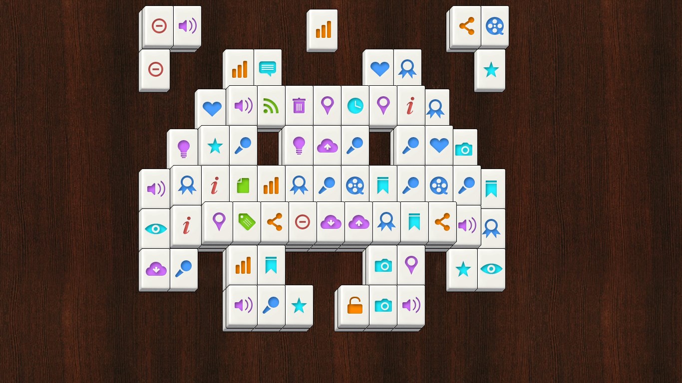 Great Mahjong Solitaire game!Fun for all ages!Playable with mouse and touch4 levels and 3 different tile themesUndo and shuffle functionality