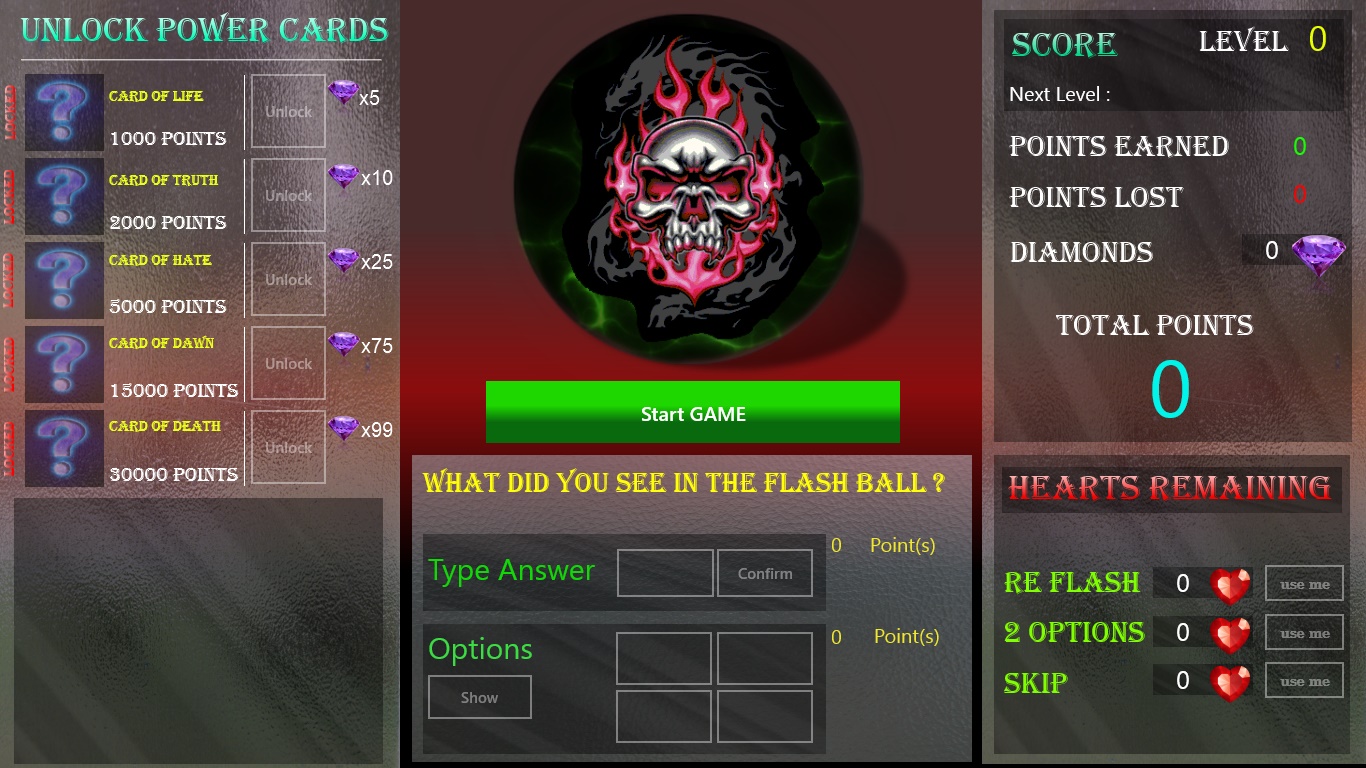 Unlock the Cards of darkness with the Flash Ball. Earn enough points to unleash the card of Death. The GamePlay is so designed that you can test your vision to identify the flashing objects.