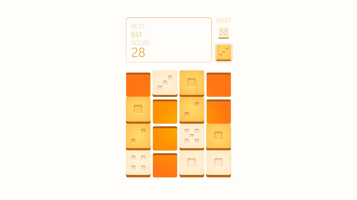 7Pips is a little less casual than those games, this game may need a little simple math (actually there is a in-game help to smooth things out), and plenty of strategic placement planning! Place dice on board, same color adds, different colors subtracts, form dice faces with 7Pips to score. Fill up the board and it's game over, last long and score high!