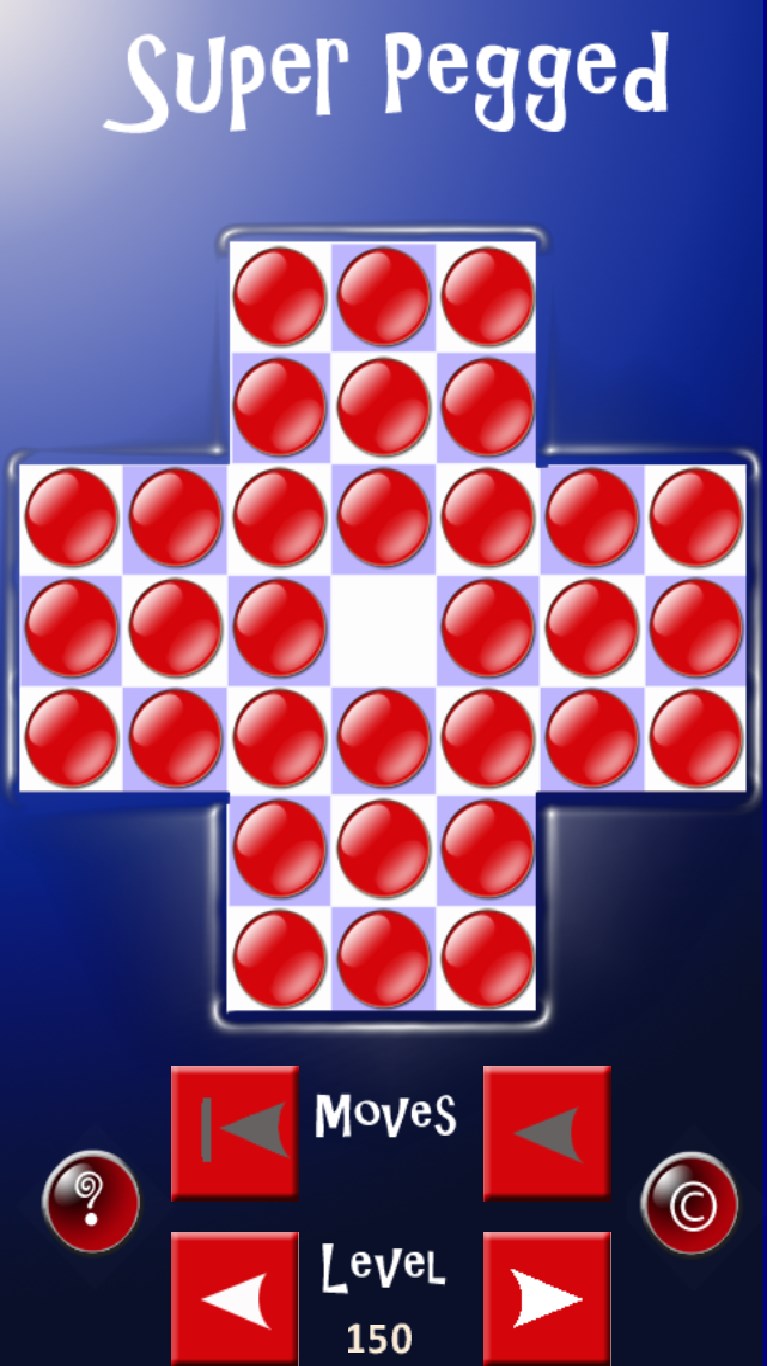 Super Pegged is based on the classic game Peg Solitaire, challenge your intellect with the brain twisting puzzles of Super Pegged... featuring 50 free unique puzzles. Test your logical reasoning against one of the most widely loved and played game of all time.