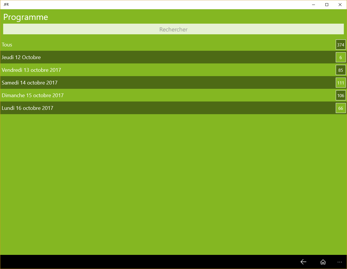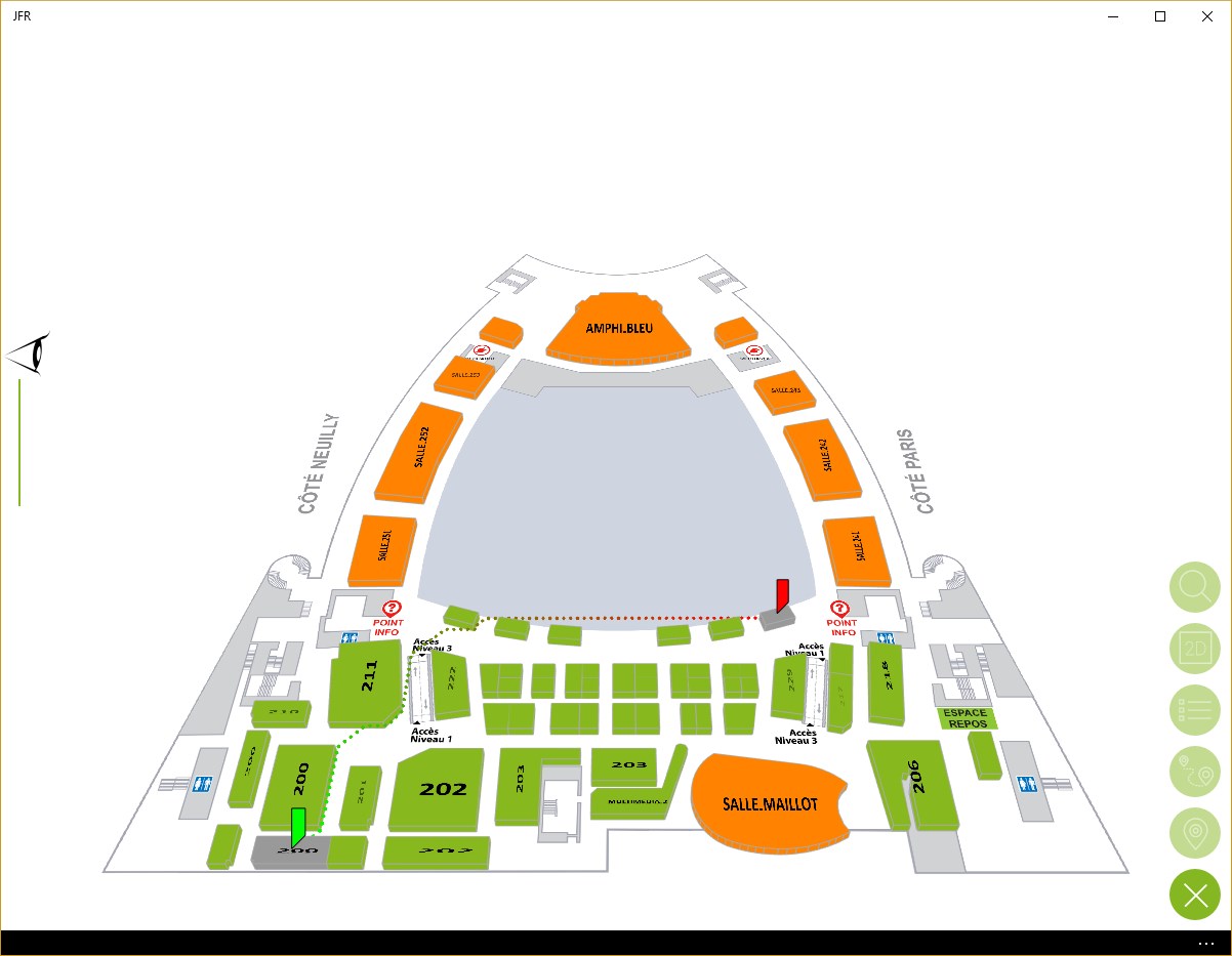 - L’application permet de créer son propre programme en intégrant les séances dans son agenda personnel, de localiser un stand et s’orienter ; mais aussi, d’interagir en salles, en posant des questions aux modérateurs et en votant lors des séances interactives. L’application des JFR vous permet également d’évaluer les séances.