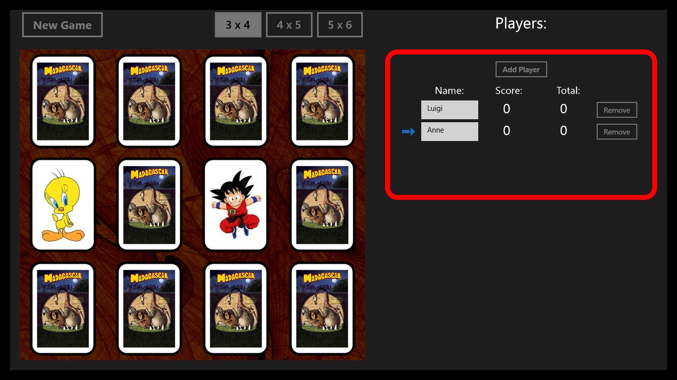 Memory is a card game that requires concentration and memory. In the game the cards are initially shuffled and placed face down on the table. The first player discover two cards. If they are equal the player collect them and he can discover two more, otherwise they are covered in their original position and the turn passes to the next player. The winner is the player who discover more pairs.