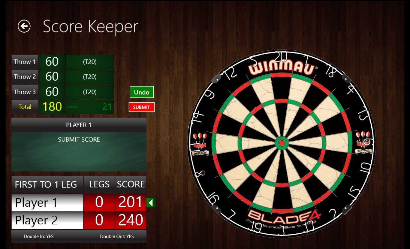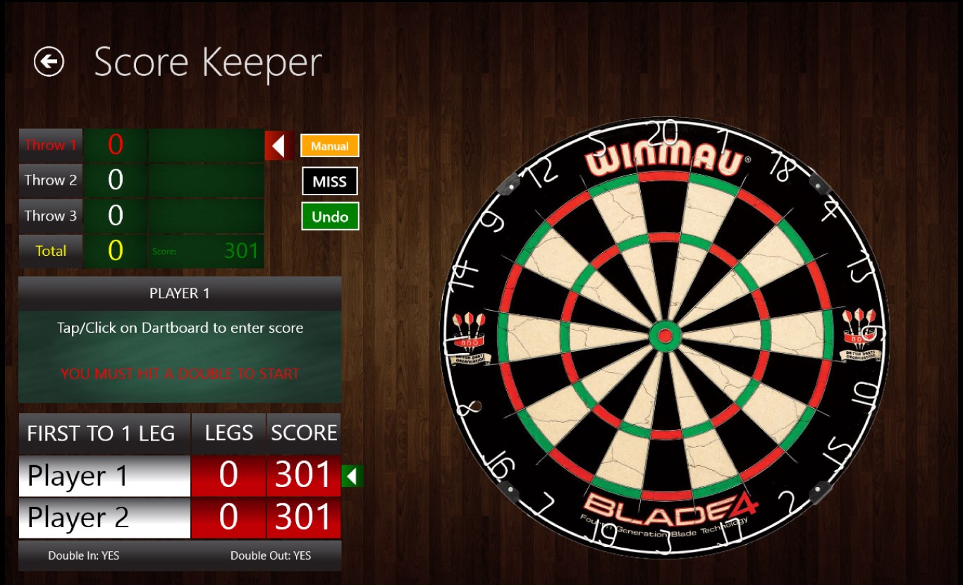 Darts Score Keeper is used for keeping score of '01 Darts Games. The game features optional Double In and Double Out, Darts Rules and a choice of entering a score by clicking a board or entering manually. A very simple but useful app.