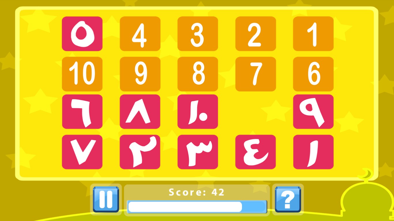 2. Matching games (Learning by matching Arabic alphabets and numbers).