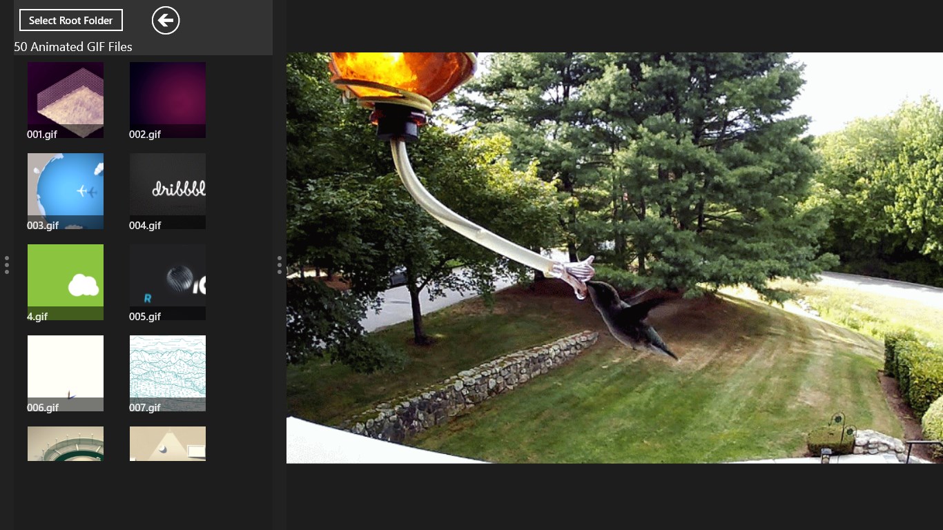 Slide show is available for the Pro version. It loops through GIFs in a folder indefinitely and has a shuffle mode, ideal for use as a screen saver.