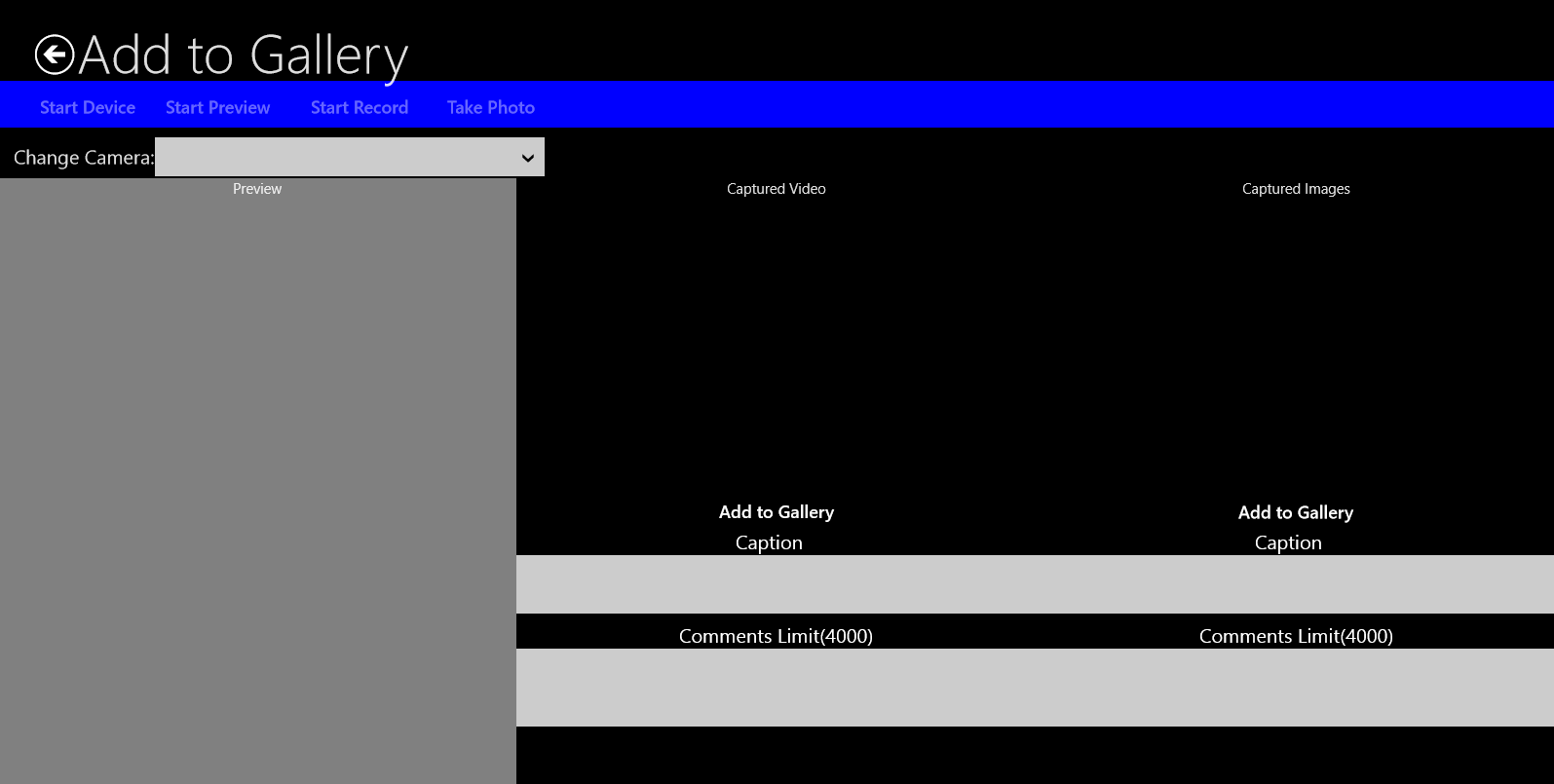 d) Start Device and Start Preview buttons were removed from the Capture screen to simplify the process.