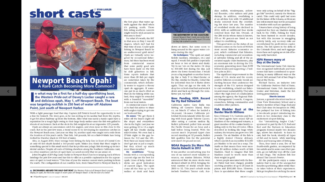 Pacific Coast Sportfishing was once called South Coast Sportfishing, which published its first issue back in 1981. Volume 1/Number 1 billed itself as “The Only Newspaper-Magazine Serving Exclusively the Southern California and Baja Sportfishermen” and was 38 pages long on black-and-white newsprint. Since then, the magazine has grown a lot in terms of our page counts and our subscribers – not to mention paper and color quality – but the basic premise is the same: We’re strictly about West Coast saltwater angling, covering the legendary waters from Central America, north to Alaska, and west to Hawaii.