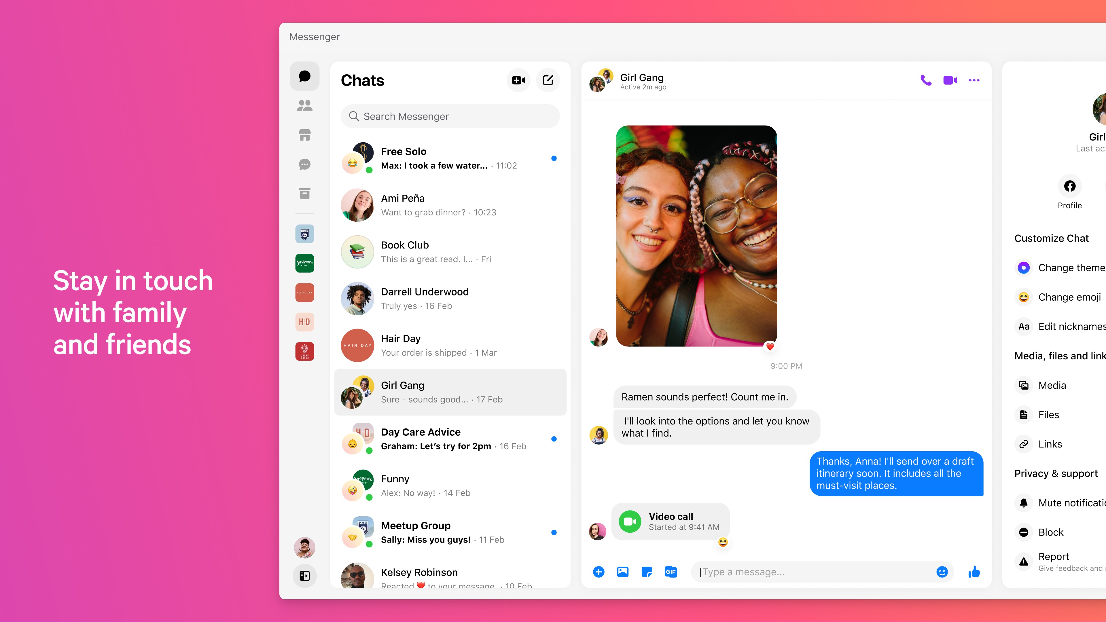 Messenger is a free messaging app that helps you connect with anyone, anywhere. Stay in touch with your friends and family, explore your interests with people like you, build your community, and share your vibe beyond words, all in one app.
