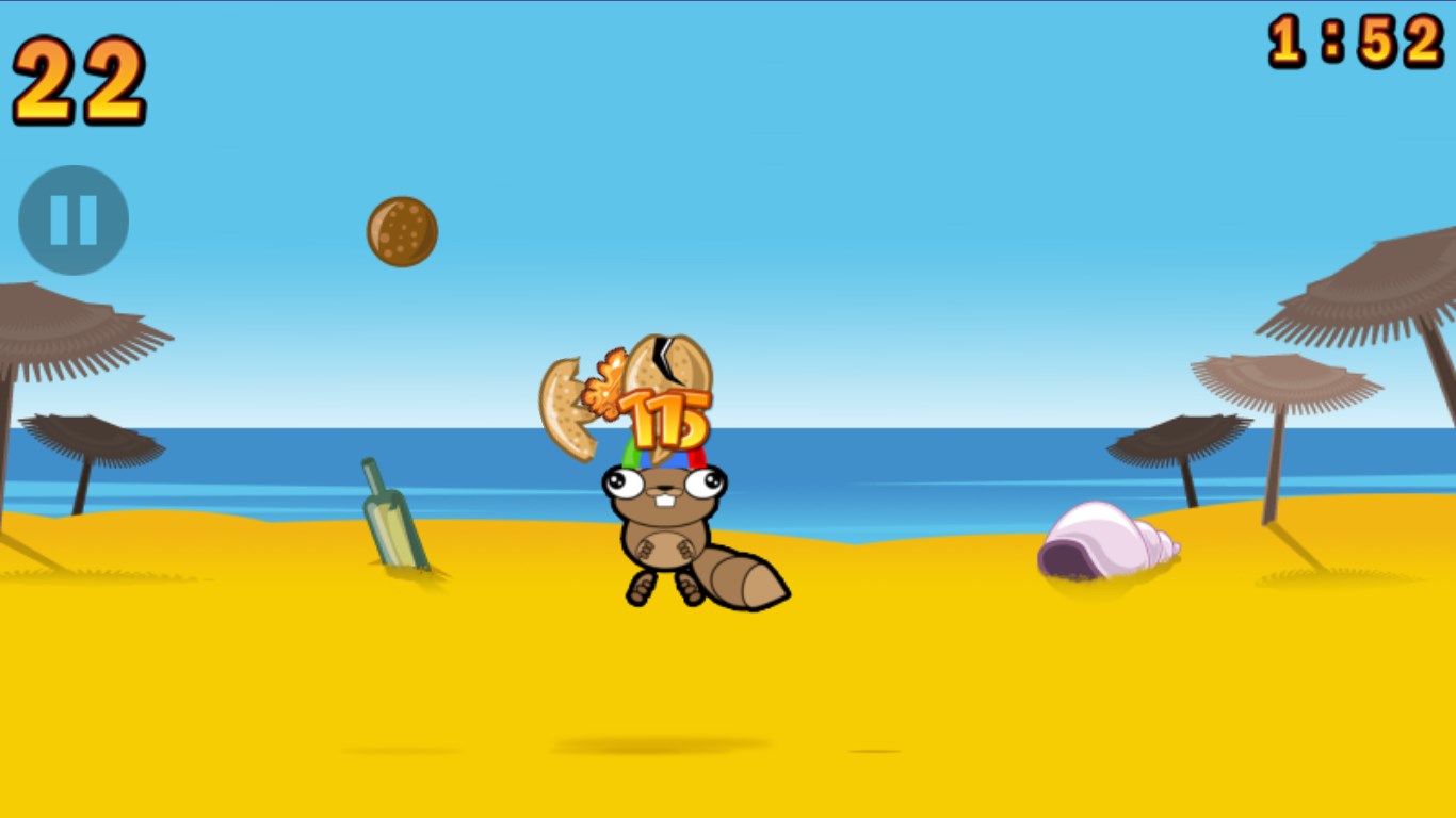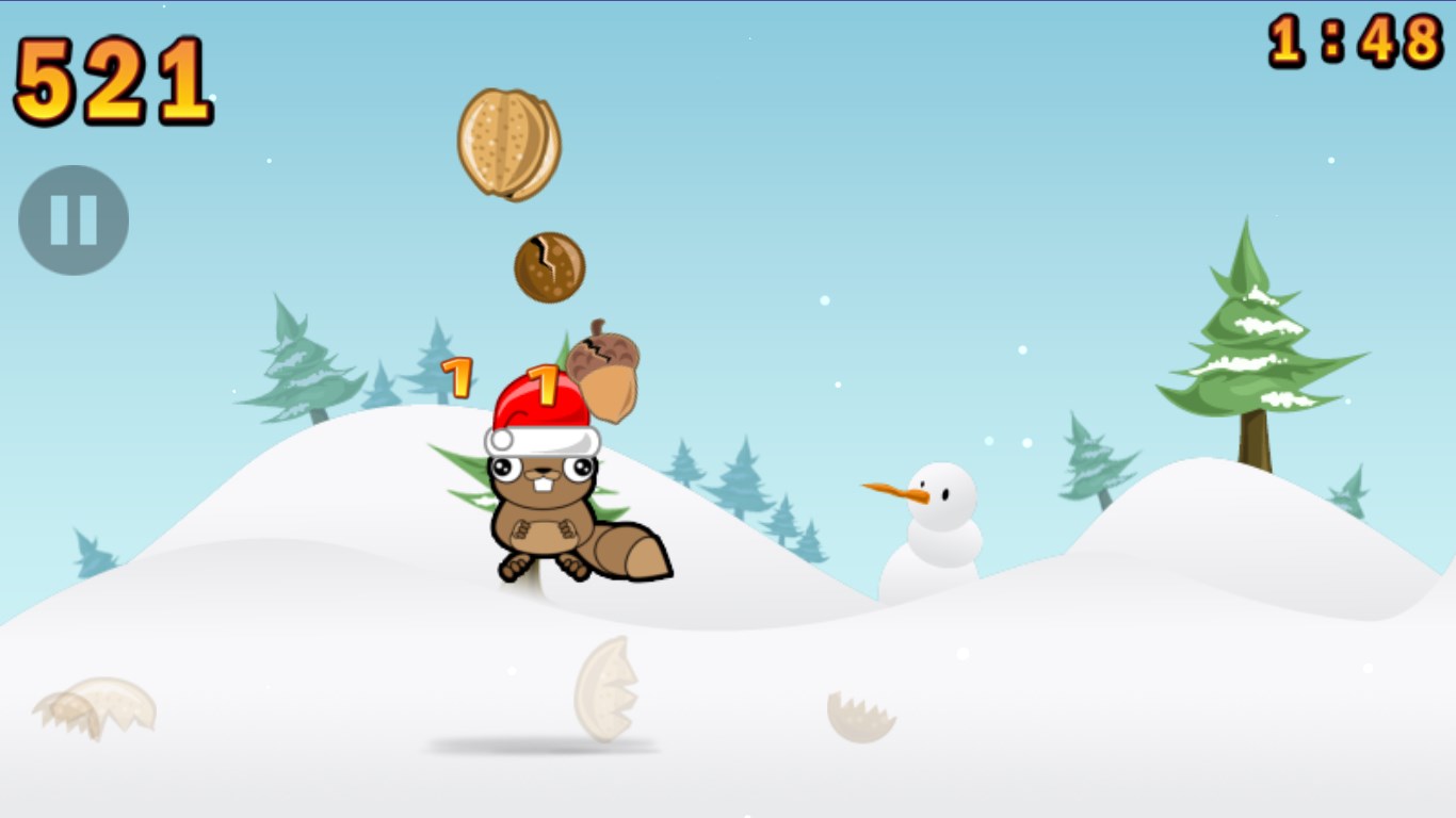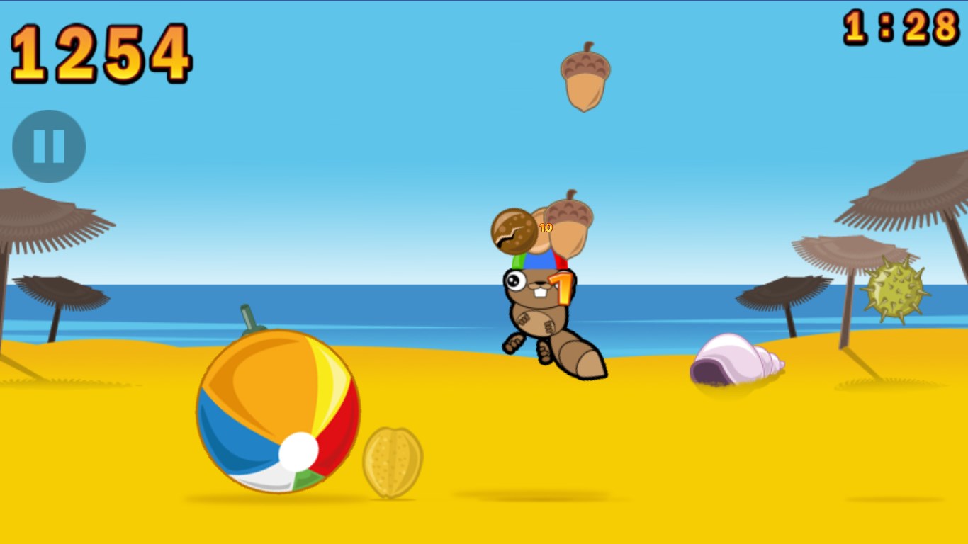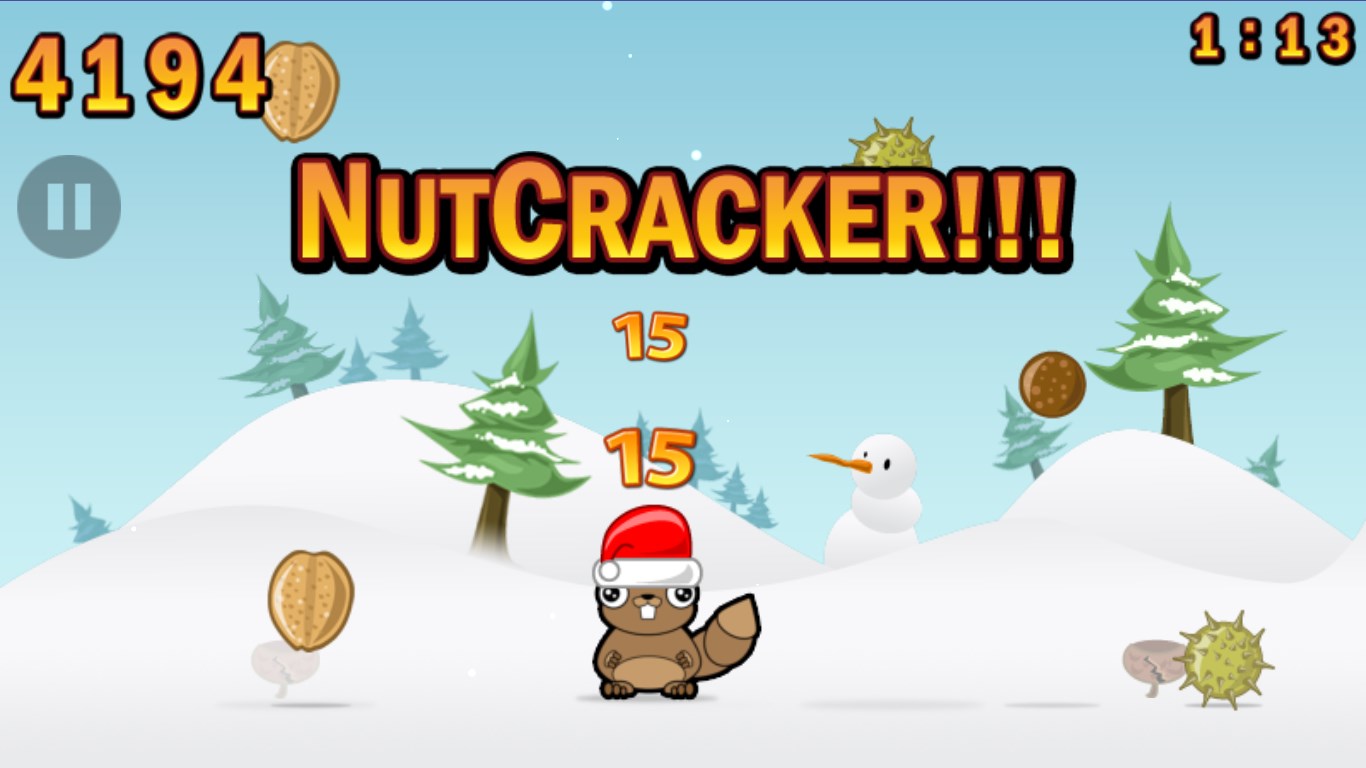 While playing the game, nuts will start falling from the sky. Each nut that the squirrel head-butts will start cracking and give you points. Once you crack a nut open, you can eat it and get more points.