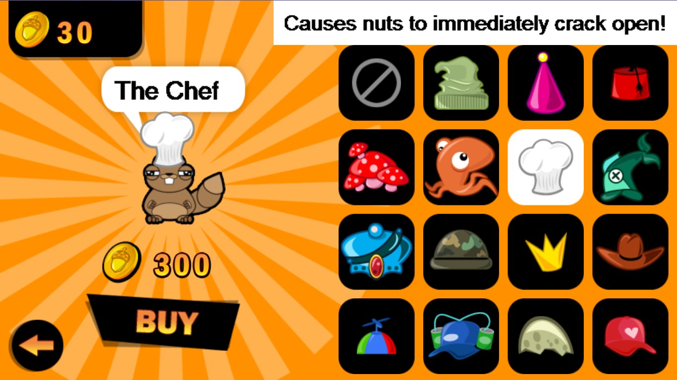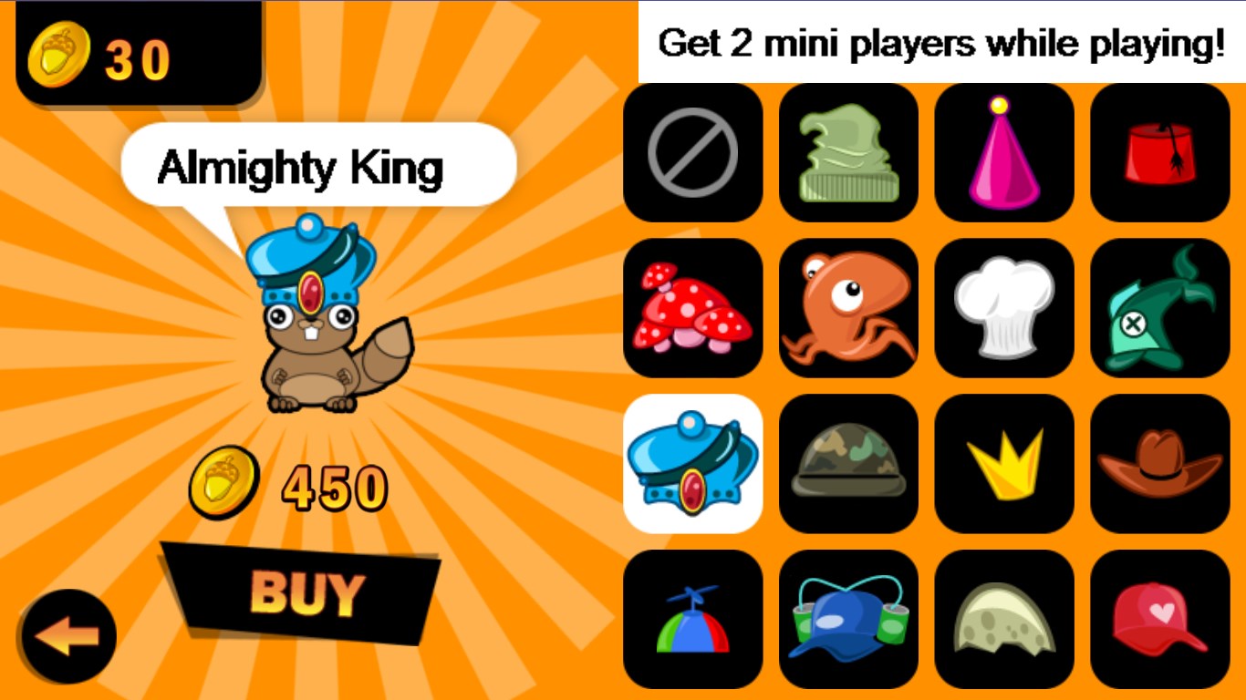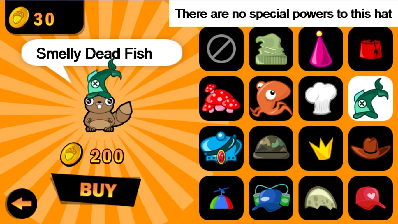 Use the hats shop to purchase hats for the squirrel, some of them have special powers!