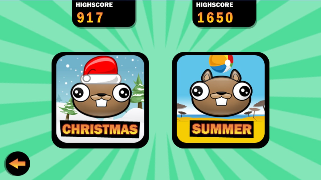 ● Summer - You have 120 seconds, enjoy the sunny beach and make sure to jump over the rolling ball, otherwise the squirrel will die!
