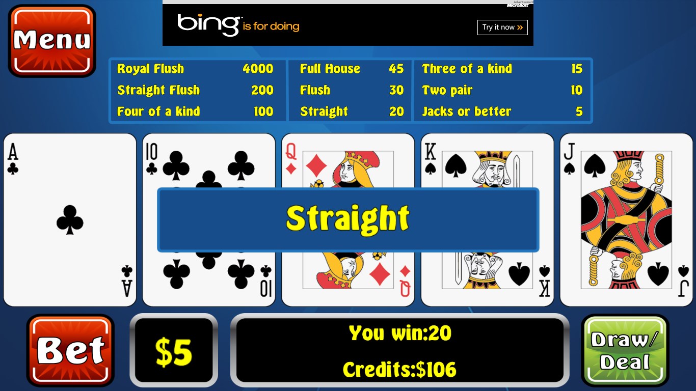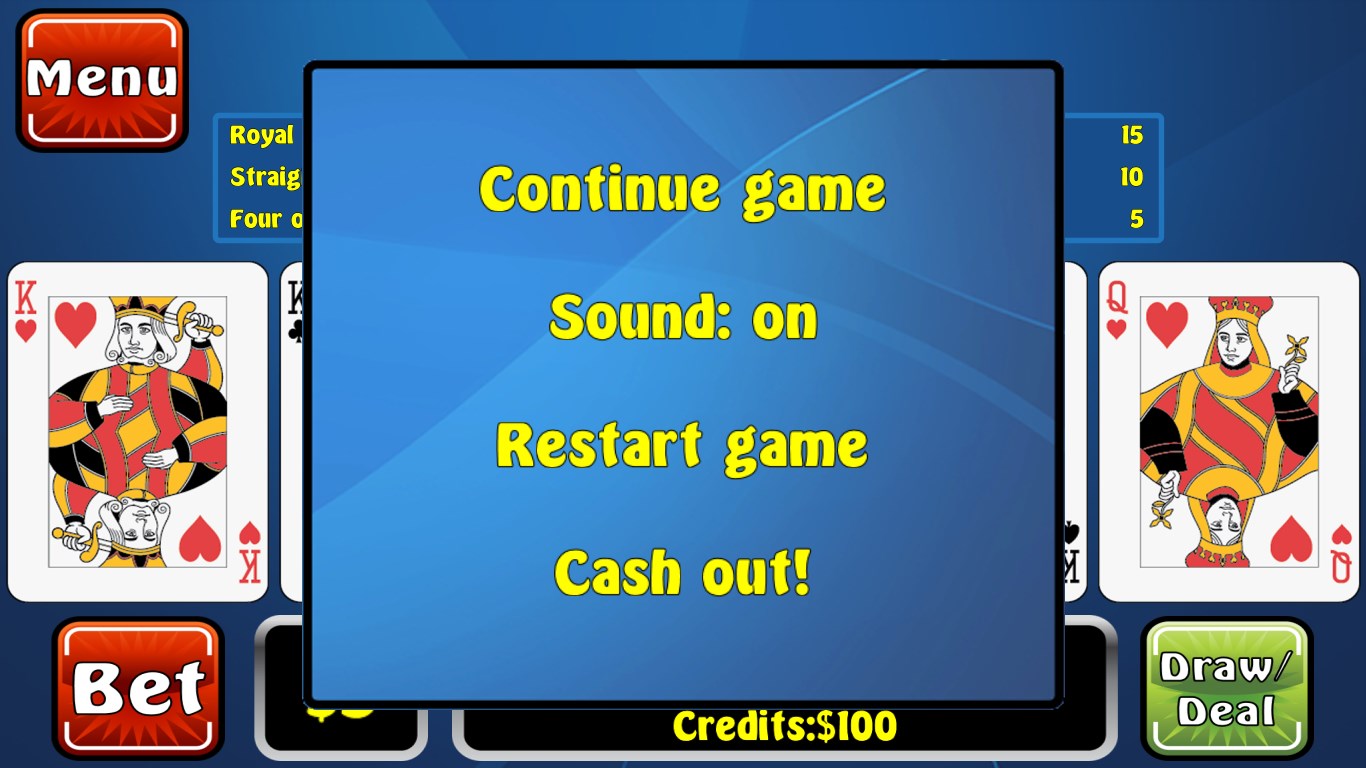 "Poker Fever" is a Video-Poker experience and it brings Las Vegas to your Windows-PC or Tablet!