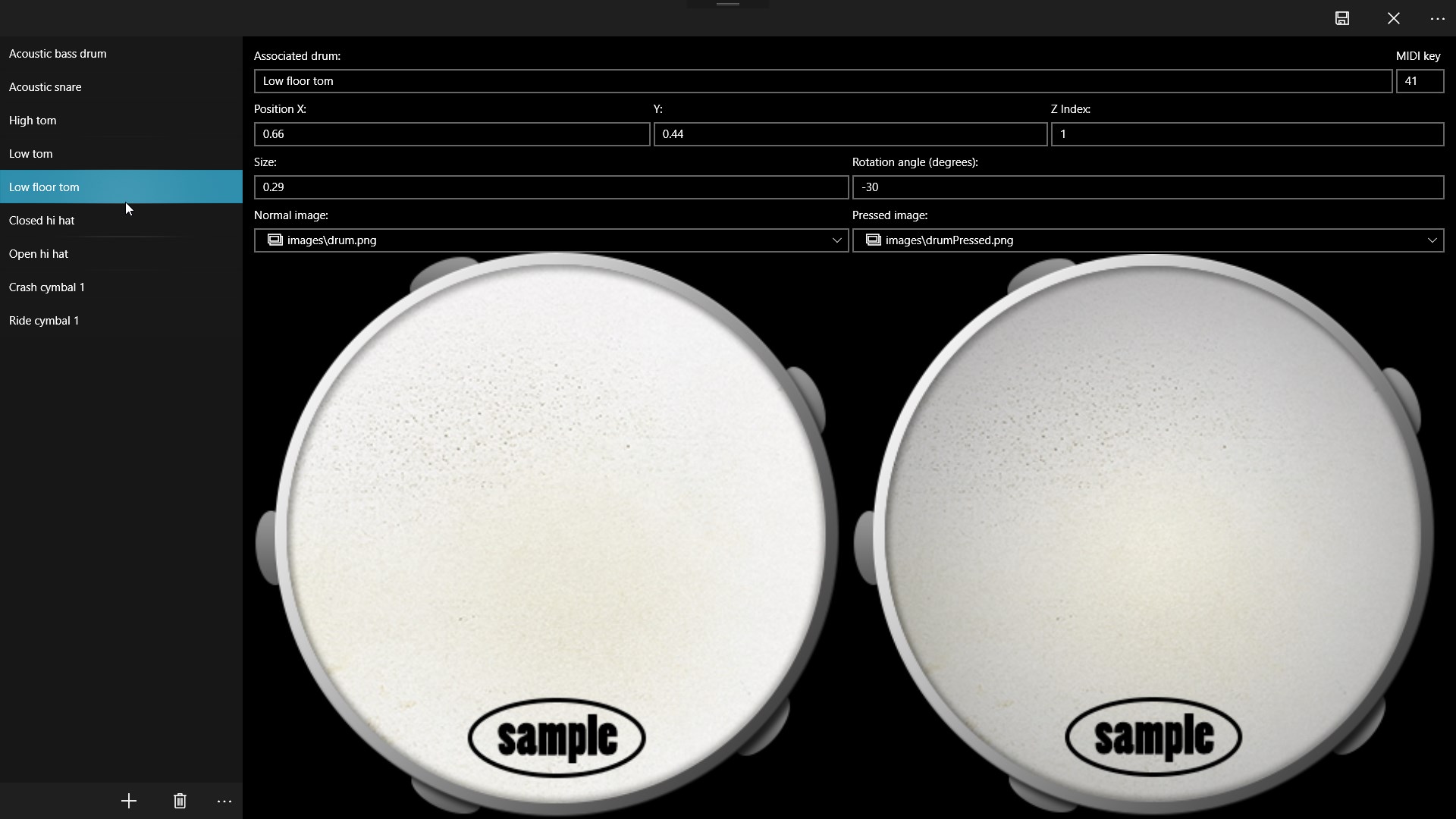 Everything is customizable: rearrange the drums, change the key bindings, create your own drum sets.