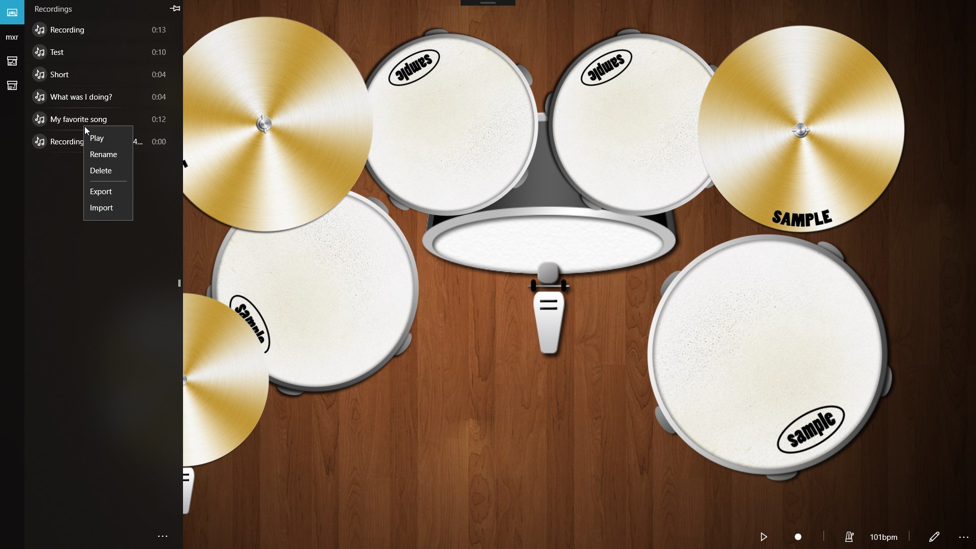 NEW! Everything about the drums is fully editable.Great quality drum samplesRecordingConfigurable keyboard bindingsDrum sets can be imported and exportedAnimated drumsMetronome