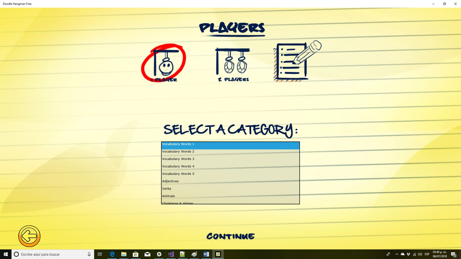 ★ 4 different themes to choose from.★ 73 word categories including 7 random modes with advanced engine to avoid repeats.★ Both 1 player and 2 player modes.★ In 2 player mode one player enters a word for the other to guess.★ Play as long as you can, after each correct word a new scene and word appears.★ Helps increase both vocabulary and spelling ability.★ Great background music and sound effects.★ Fun and educational at the same.★ Auto-save when the app closes so you can continue where you left off.