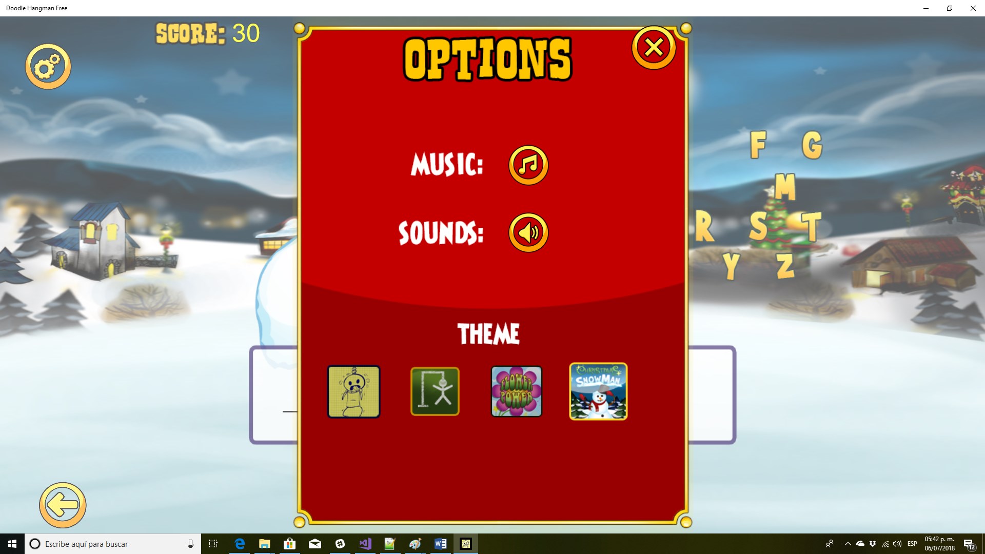 Have you ever wondered what it would be like if the hangman drawing came alive? That is just what happens in our Doodle Hangman theme. It has multiple animations per sequence so you never know what he will do next. Special escape animations occurs if you guess word when on ninth letter. Chillin' Chalk is our school house chalkboard theme where you get to play in landscape mode. Christmas Snowman has a snowman that disappears as wrong letters are chosen and Flower Power has flowers with parts that fly away. These last 2 themes provide for relaxing hangman play without the violence. :)