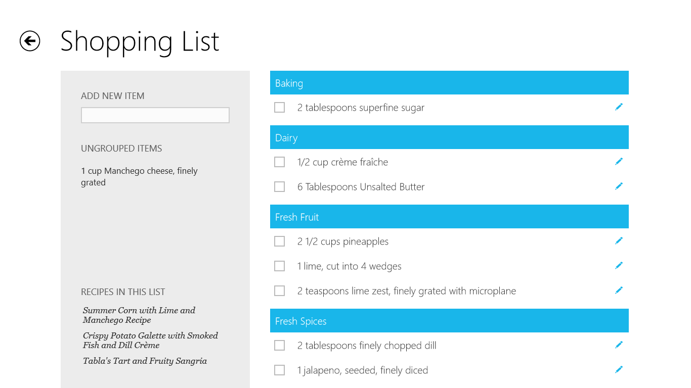 Create recipes on your Windows device.Take your Windows Tablet into the kitchen and cook your whole menu with multiple cooking timers.View recipes, edit and cook while you browse the web or check email with the Pepperplate snap view.Share your favorite recipes with friends and family via Email, Facebook and Twitter.See your most recent recipes, menus and today\’s cooking plan on the homepage.Import recipes on Pepperplate.com from your favorite sites.Combine recipes into menus for dinner party or holiday meal planning.Organize meals for the week or month by adding menus and recipes to the schedule.Add to your shopping list on the website, and it automatically syncs to your Windows device.Shopping list is automatically organized to match the order you shop in the grocery store.The COOK NOW feature allows you to set multiple timers for all of the recipes in your menu.Create your own unlimited categories to organize your recipe collection.Your collection synchronizes from the website and is backed up on your device automatically.Take your entire recipe collection with you to the store or while traveling, no Internet connection required.Live Tiles show today\’s scheduled menu.Custom snap views for recipes, menus, shopping, planning and cooking.Internet Explorer can share to Pepperplate from supported recipe import websites.