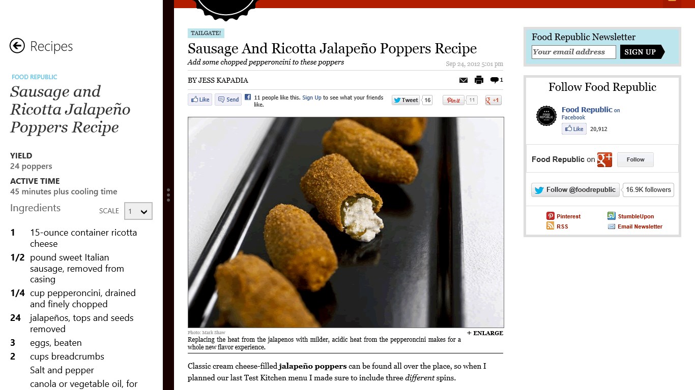 Pepperplate is the only app for serious cooks - it has all the tools you need to cook weeknight dinners or host a dinner party for 12. Manage your recipes, create menus, shop with ease and cook like a pro on Windows 8, the web and mobile devices.