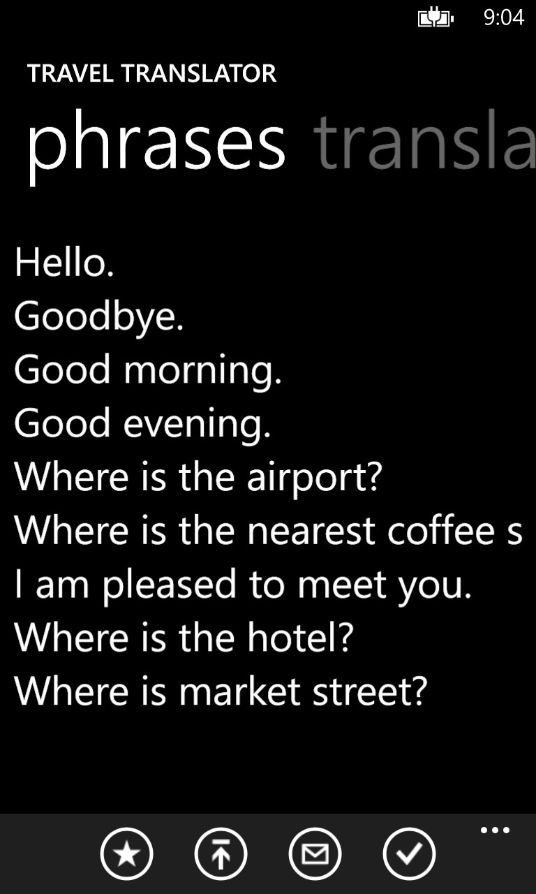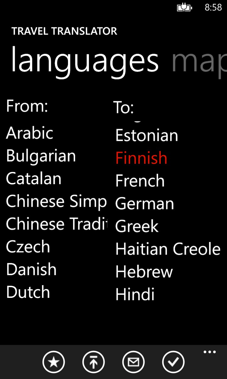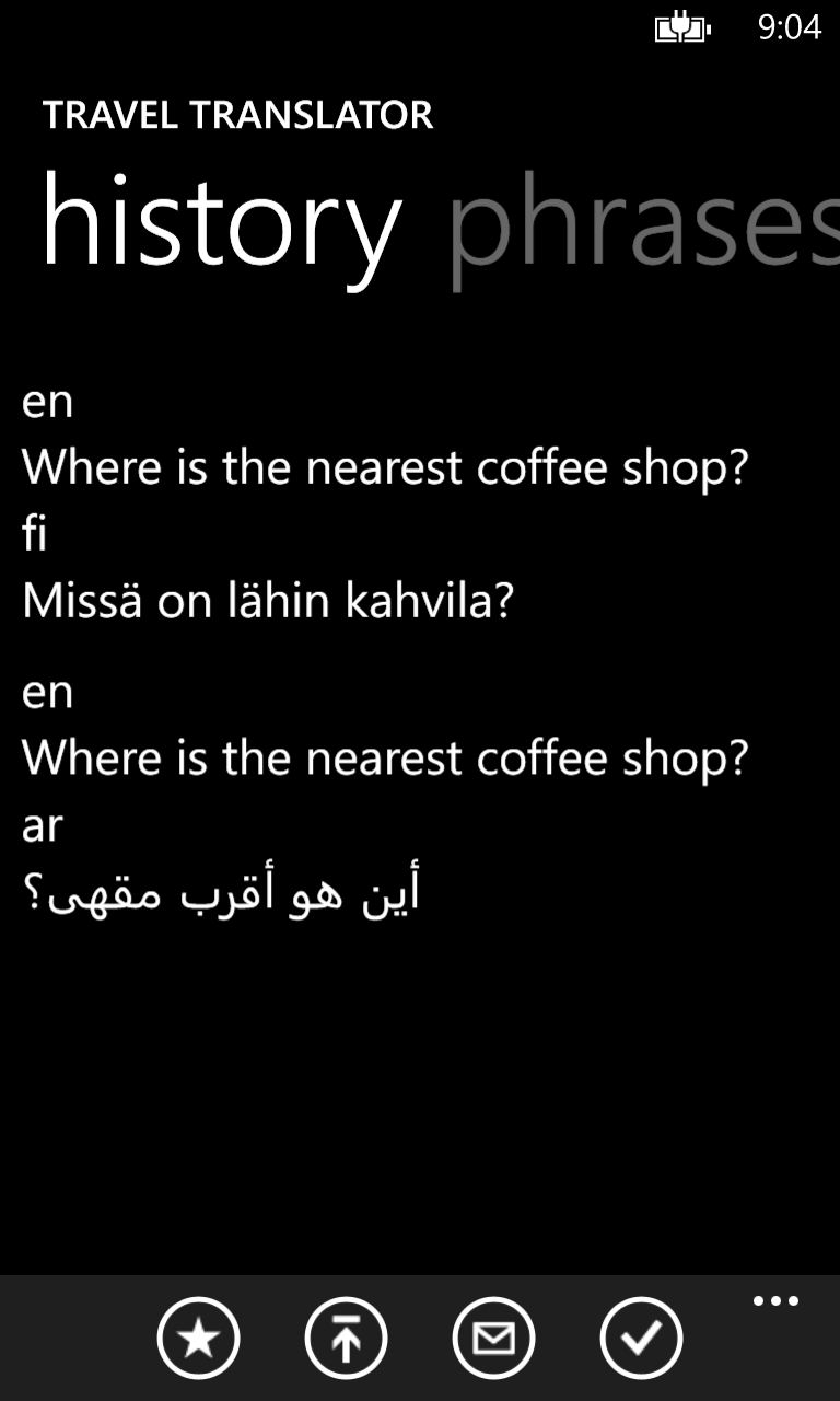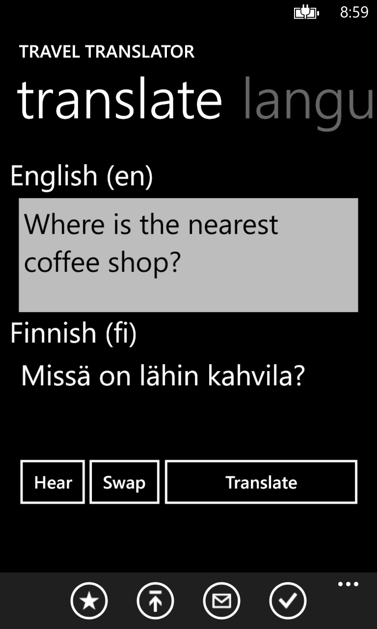 Speech audio output for the translated text is supported for most languages (Windows 8 Phone).