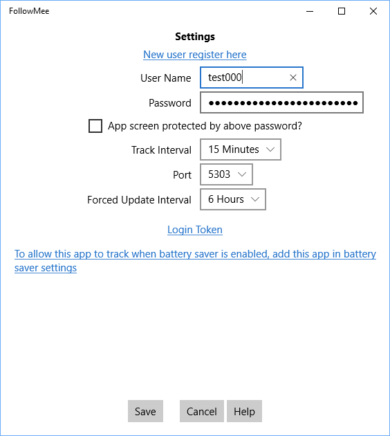 After you download and install the app, you are asked to register your user name and password. Once the app is started, you can monitor its location in the FollowMee web site.