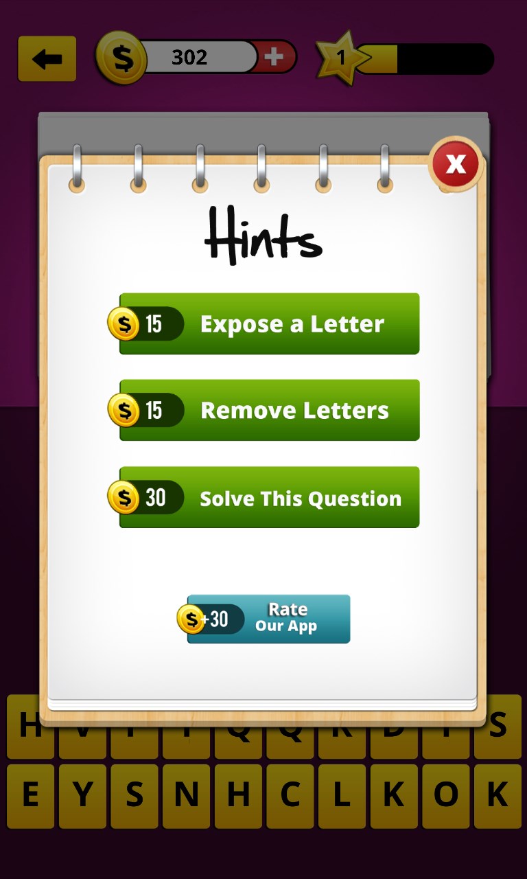 Expose A Letter - Using this hint will reveal a random letter in the puzzle. Use this hint when you need an extra nudge to guess the icon on a hard question!