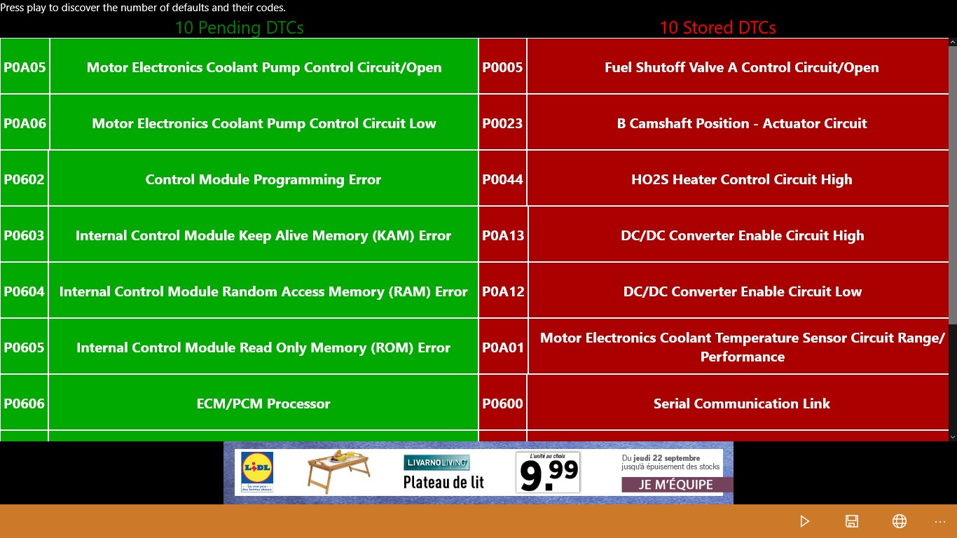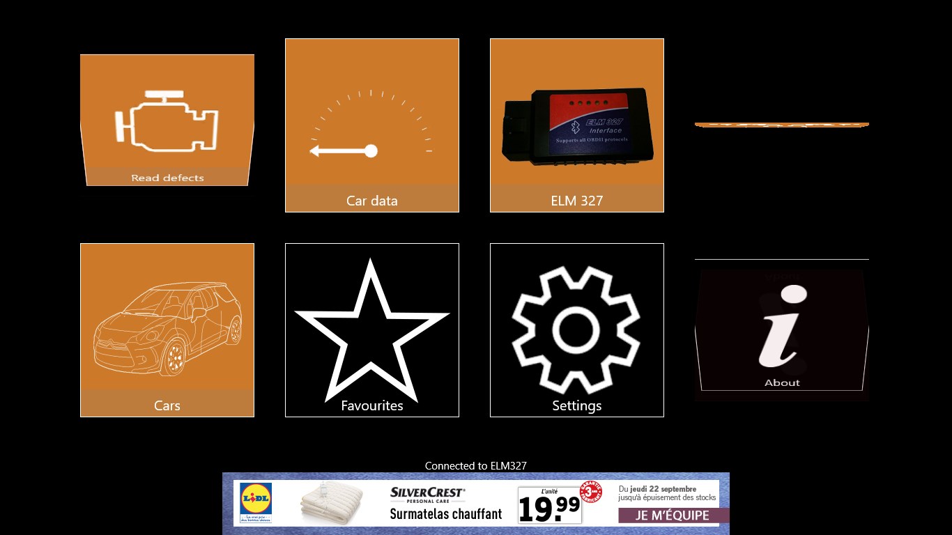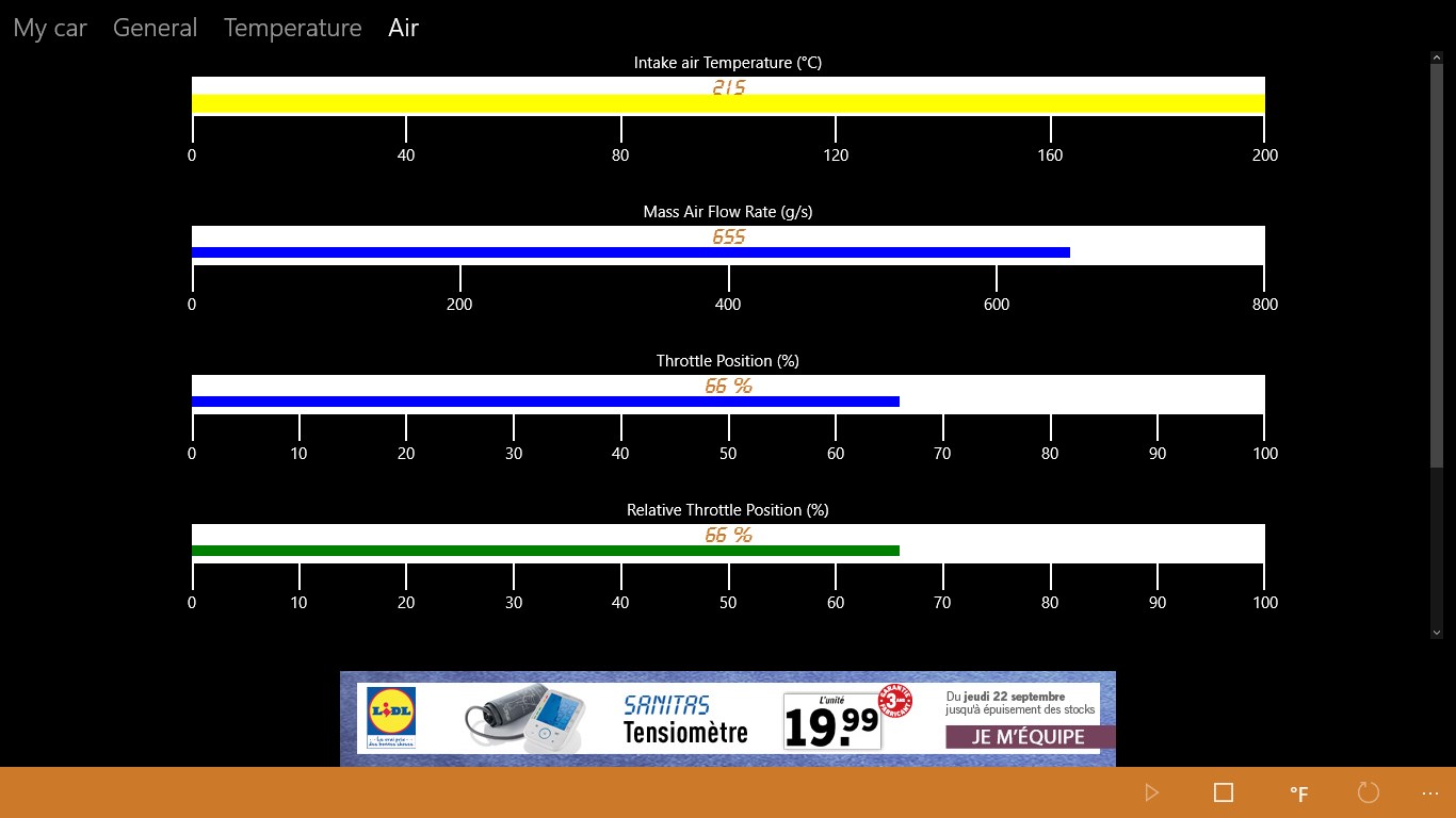 Diagnose your car , the first automotive app from CeriBoo in Windows8. Thank to your device ELM 327OBDII discover the active defaults of your car. Also, discover other information concerning your car ( water engine temperature, etc...) You freely can use your Bluetooth device freely even set it up for an other use! This App can be considered as a first Check before going to the garage CeriBoo will not be responsible in case of car damages. This application works on cars thats supports OBDII Protocol