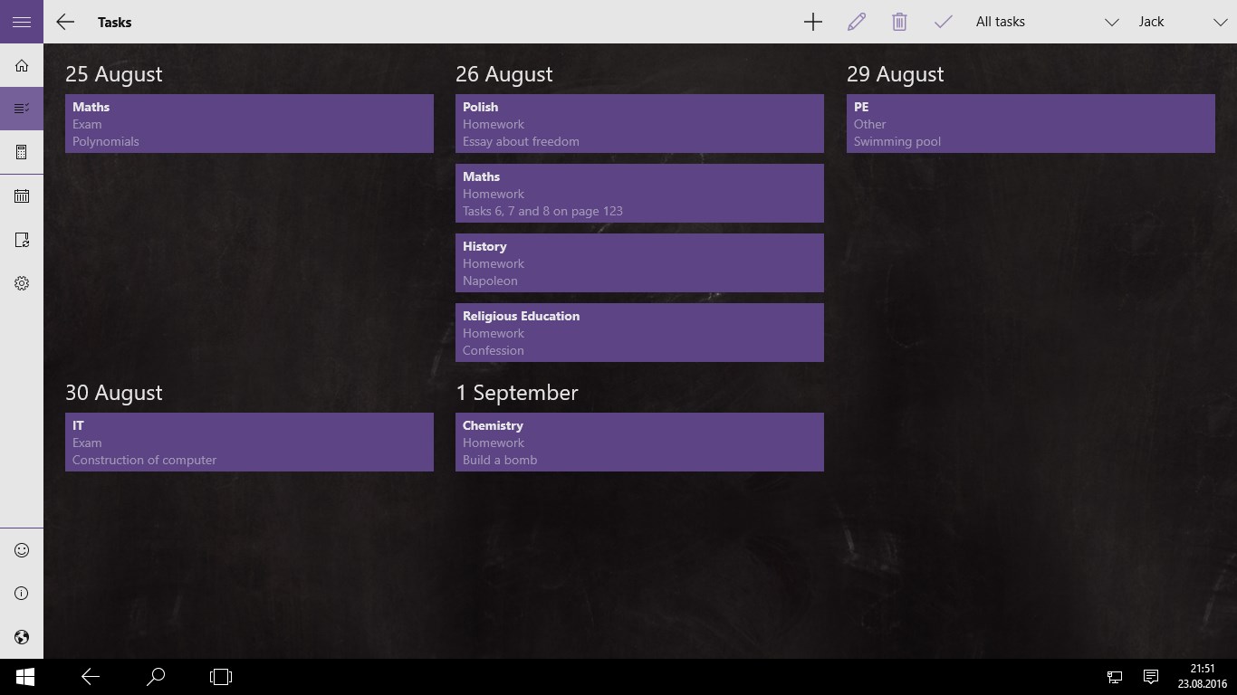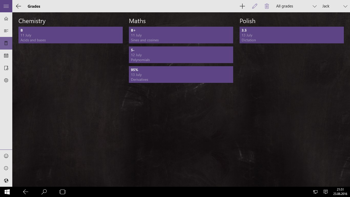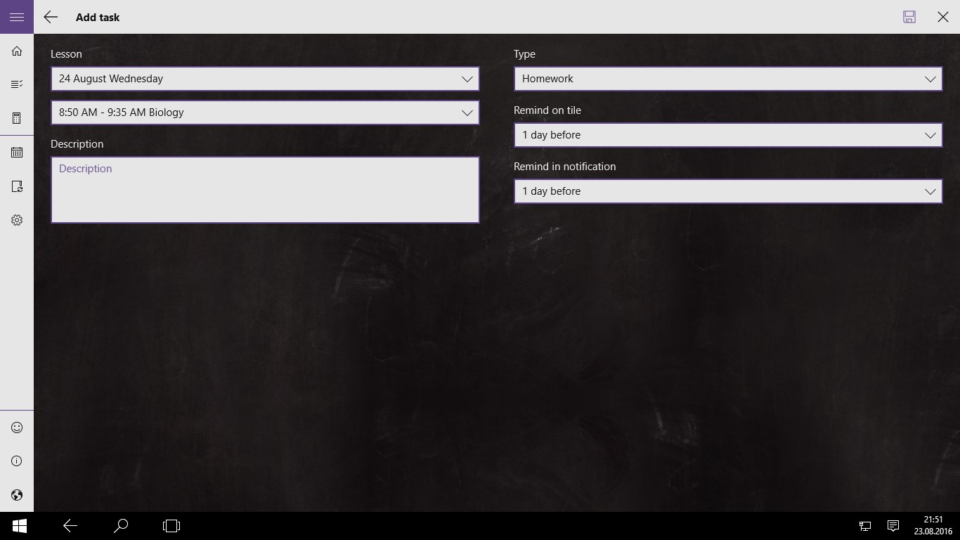 Lesson plan/timetable app combined with calendar and reminder. Manage lesson schedules, homeworks, exams, grades and much more. Ideal for pupils and students, but also for parents.