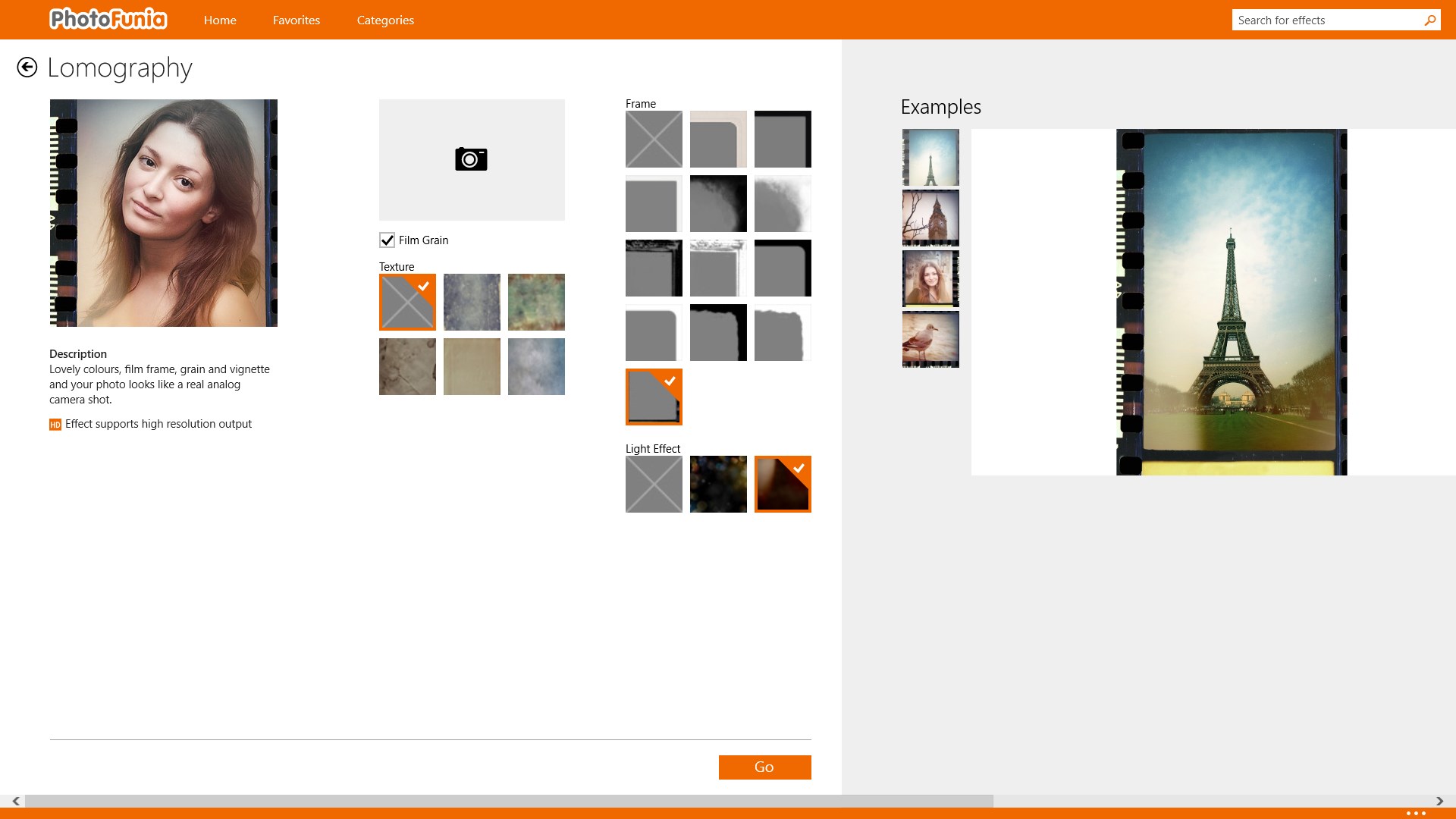 PhotoFunia is free and very easy to use. Just select an effect you like from over 300 different effects, select your photo, and PhotoFunia will handle the rest for you.