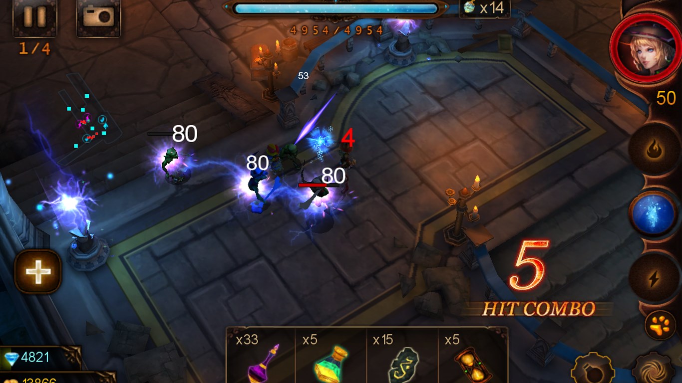 - A wide selection of weapons that can be equipped and upgraded; Each weapon possesses a unique magical skill; Also various items to aid your combat;