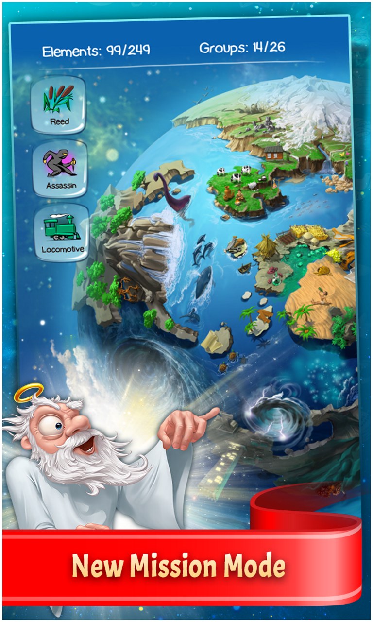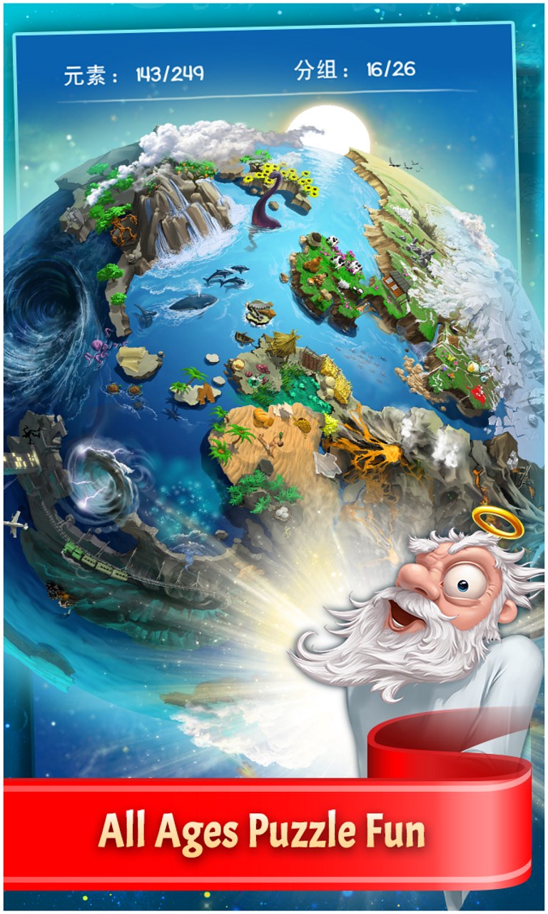 In this addictive, ALL ages, puzzle game mix and match different combinations of fire, earth, wind and air to create an entire universe! As you create each element watch your world come alive as each element animates on your planet. The new “Planet” mode offers a new challenging way to create a universe of your dreams.