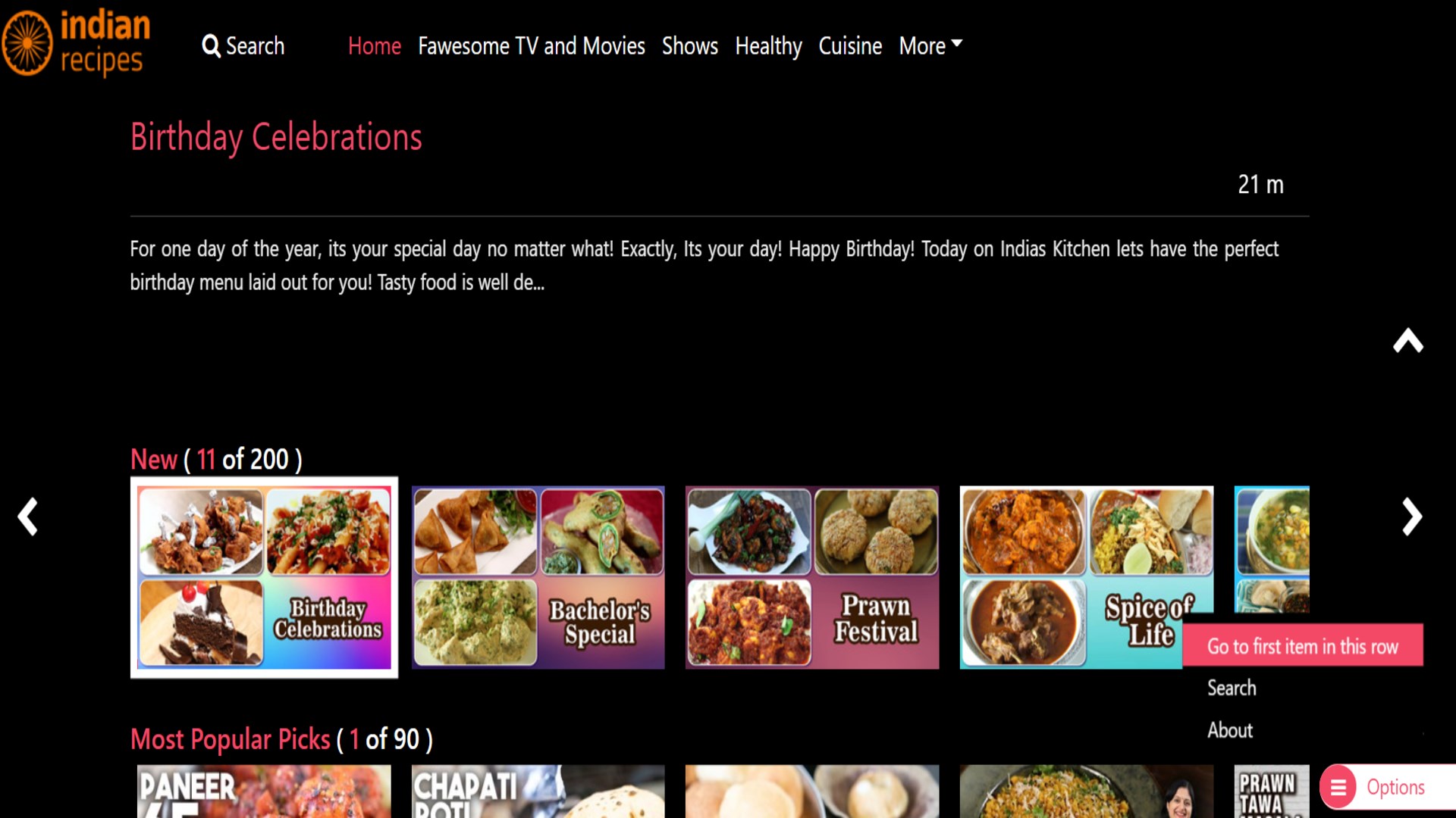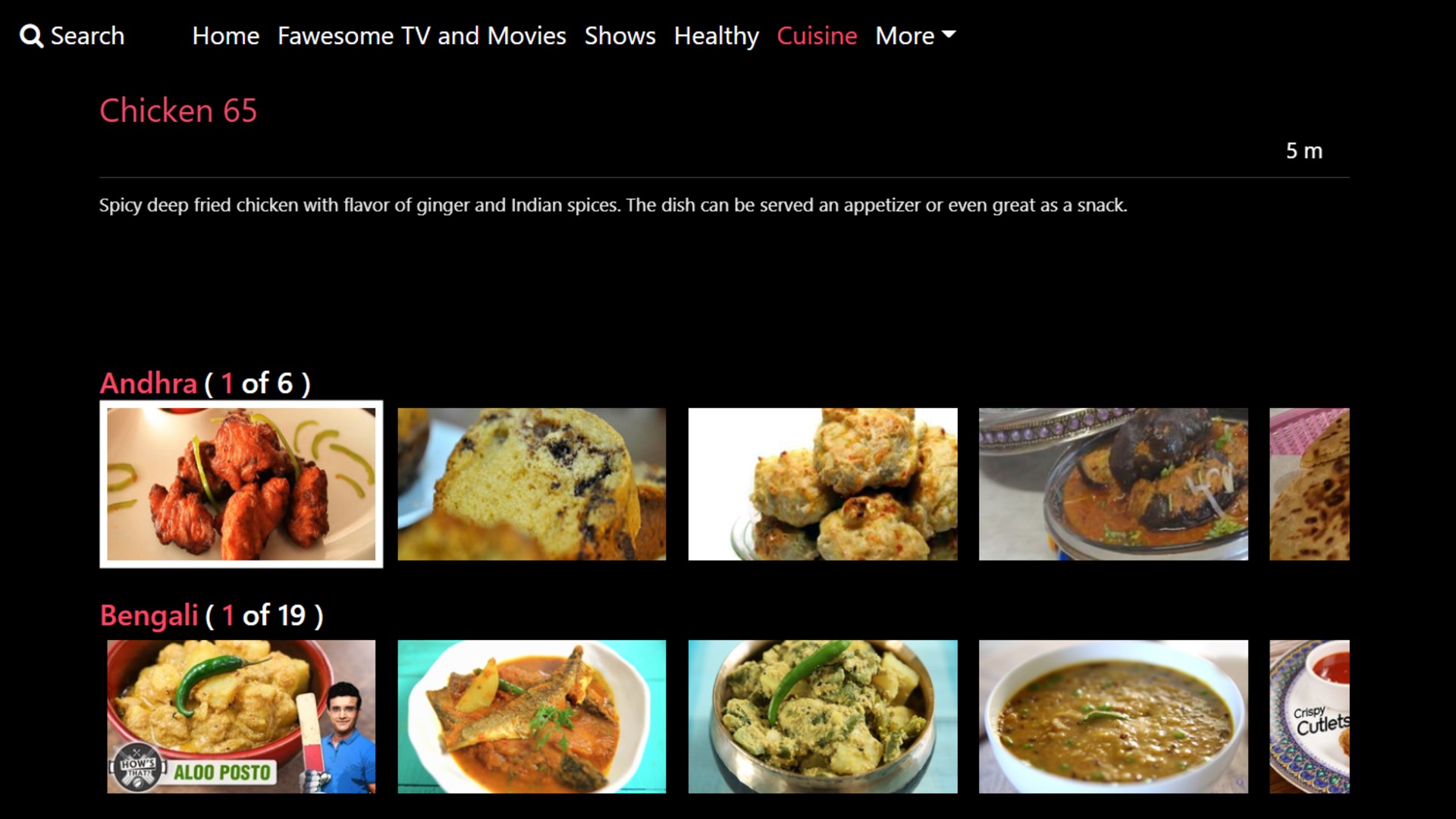 Indian Recipe VideosBengali, Hyderabadi, Kerala, Maharastrian, North Indian, Punjabi, South Indian RecipesShows like Manjula, Showmethecurry, vahrehvahchef etc..Editor curated contentCreate your own playlistSearch for your favorite recipes