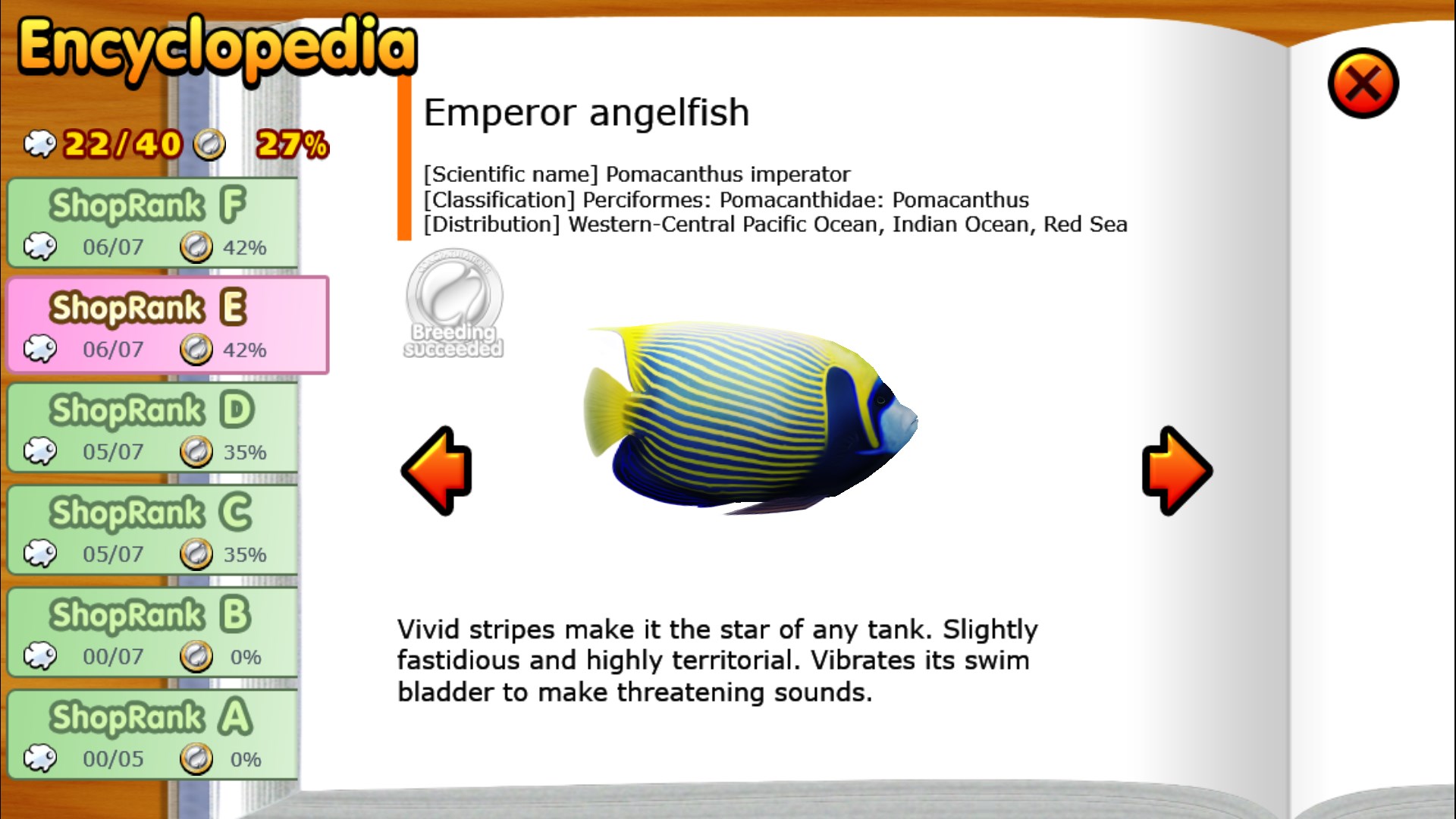 Once you have taken care of a fish, it will be entered into the Encyclopedia.