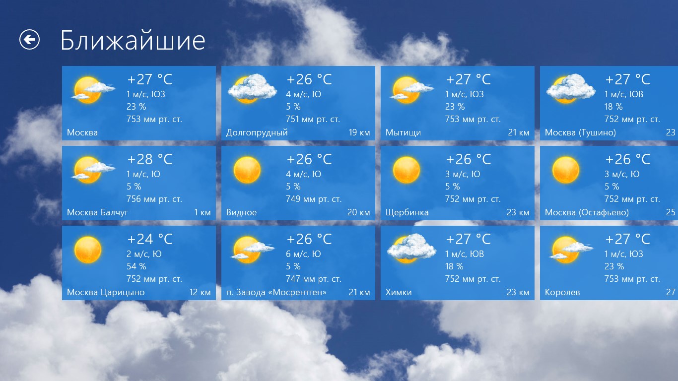 Информация о текущей погоде по всему мируПросмотр погоды поблизостиТочный прогноз погоды по часамПрогноз погоды по днямКраткий прогноз погоды на неделюИнформация о погоде на лайв-тайлахБыстрый просмотр погоды через поиск